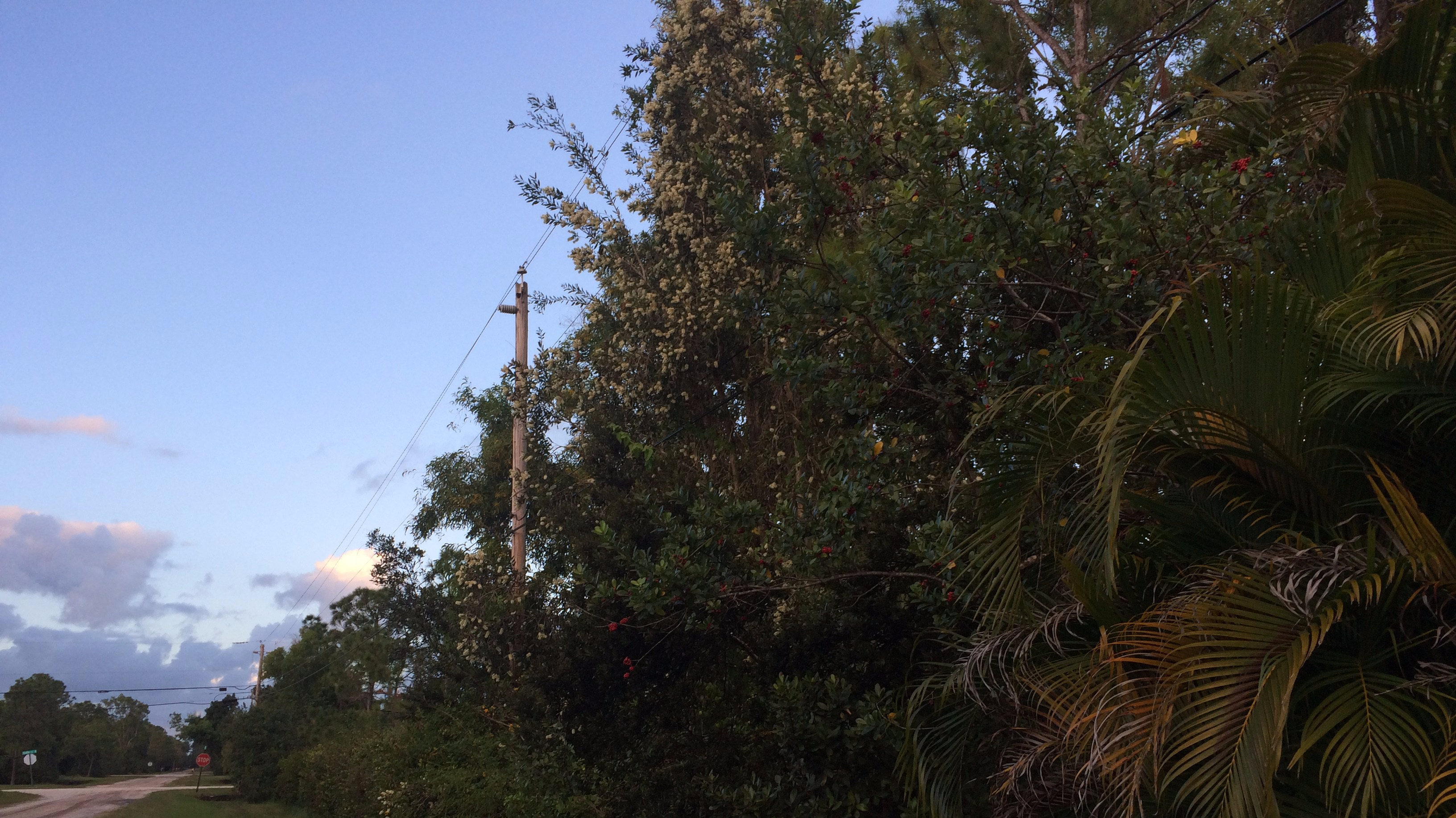 When I arrived home yesterday after school, rolled our garbage can and carried our recycle bins to the road I noticed the white blooms of our melaleuca trees, the red berries on our Florida hollies, and a green vine and acacia trees showing some buds with yellow. This scene is not as majestic as the brilliance of the Northeast maples and oaks, but each of the signs of nature’s poetry mean the same thing: Fall has arrived.