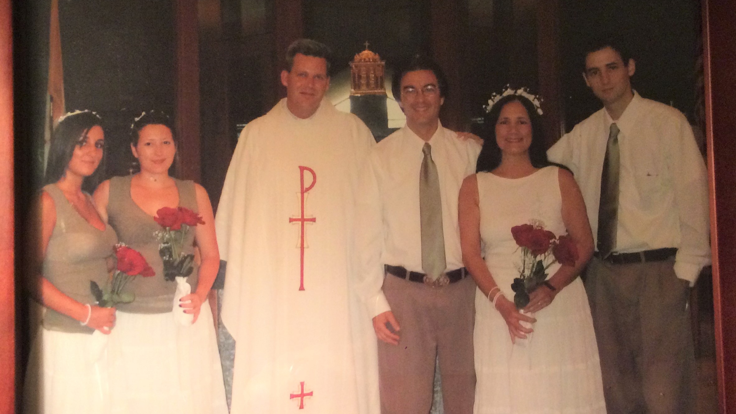 Photo: Our tenth anniversary and Convalidation celebration officiated by Fr. Don – Christy, Mia, Fr. Don, me, JoAnn, and Jack.