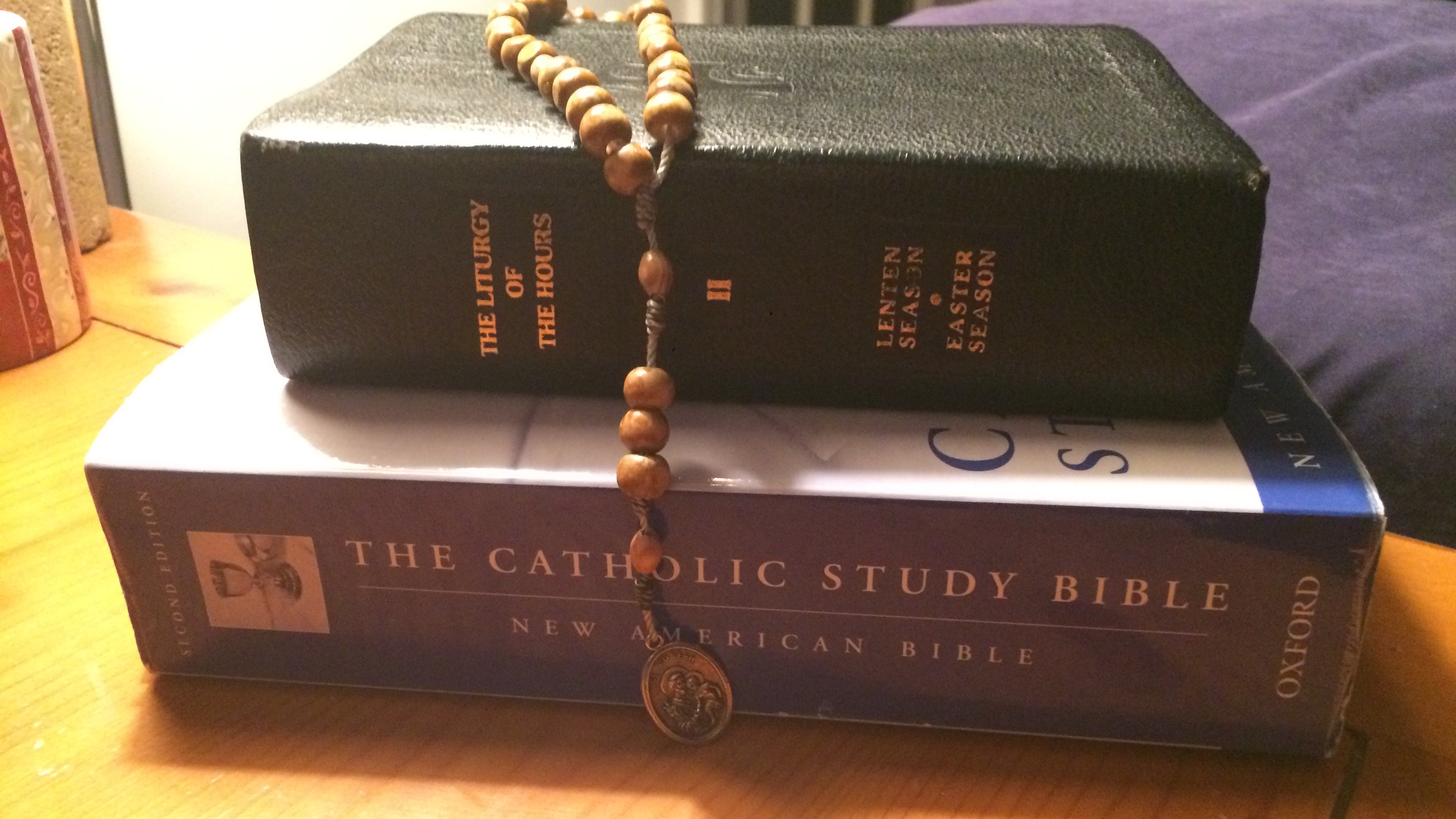 Photo: Bible, Breviary, and Rosary, my anchors for helping me to trust Jesus and put God first