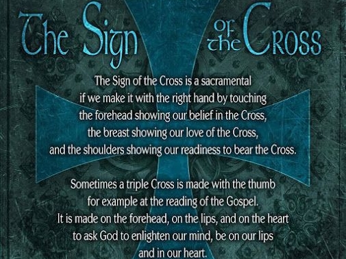 We also may bring this sacramental practice into our everyday lives. This gesture we can also make when driving past a Catholic church out of reverence for the true presence of Jesus in the tabernacle. We can also make this gesture and say the accompanying words, at the beginning and end of prayers, before and after we eat, in private as well as in public. We can see this movement of crossing one’s self at sporting events, before taking tests, when passing an accident, or when some one cuts us off in traffic. This gesture being a much better choice than a few others we might otherwise be tempted to use.