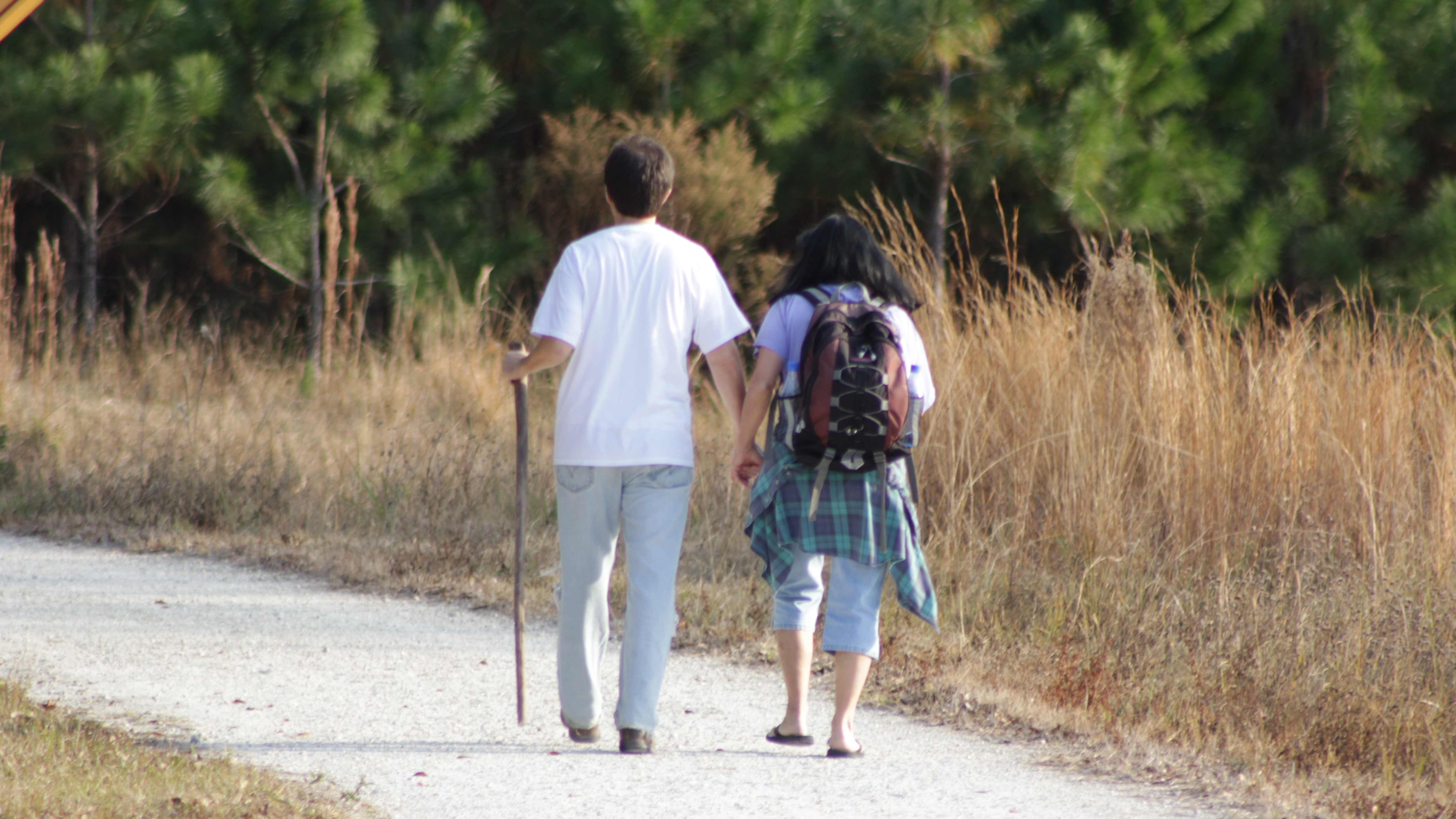 Photo: JoAnn and I on a Christmas hike, 2010, taking turns carrying the food backpack. Photo credit – Jack McKee