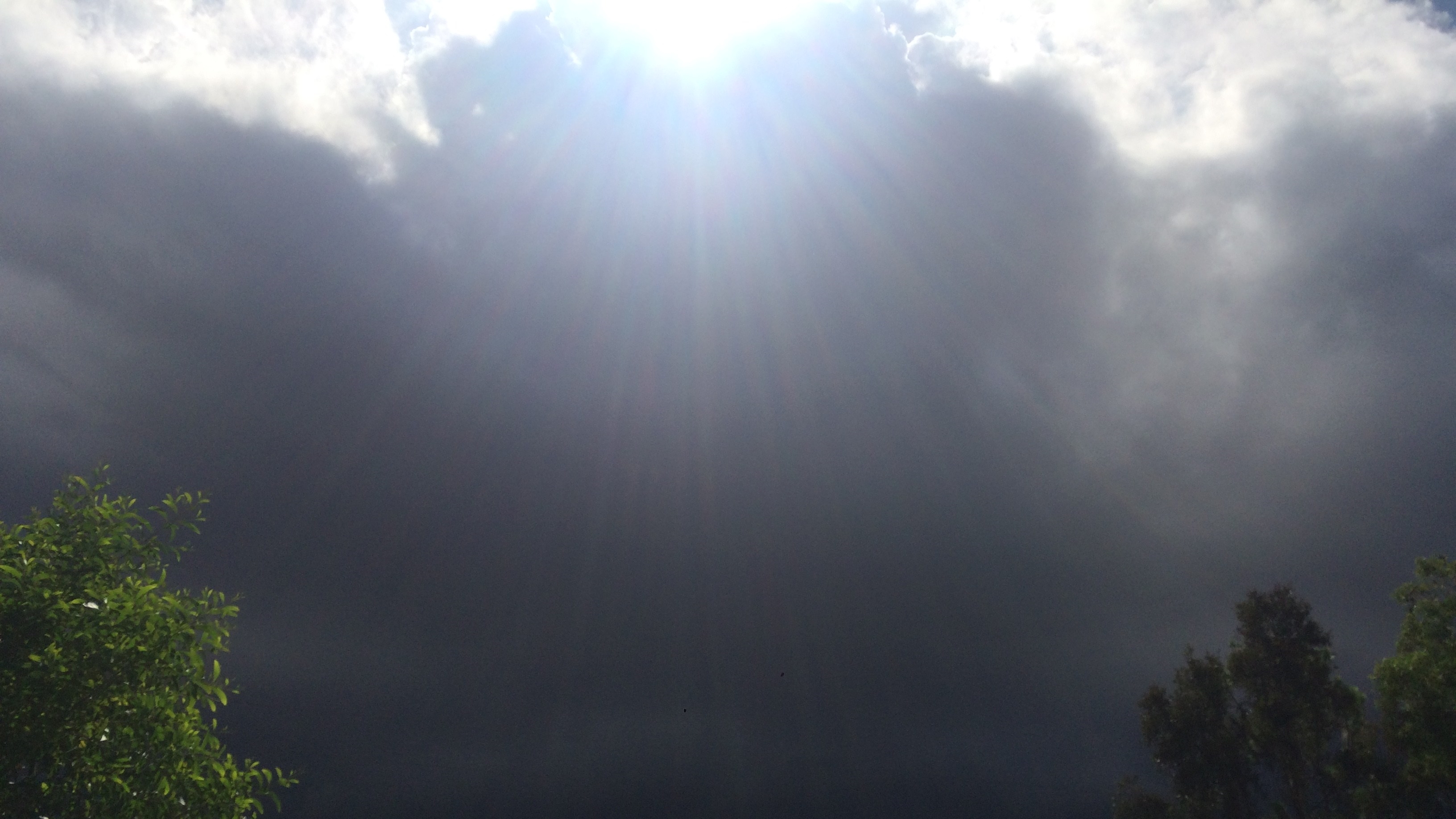 Photo: The sun shining bright amidst the gathering storm clouds one afternoon this past week.