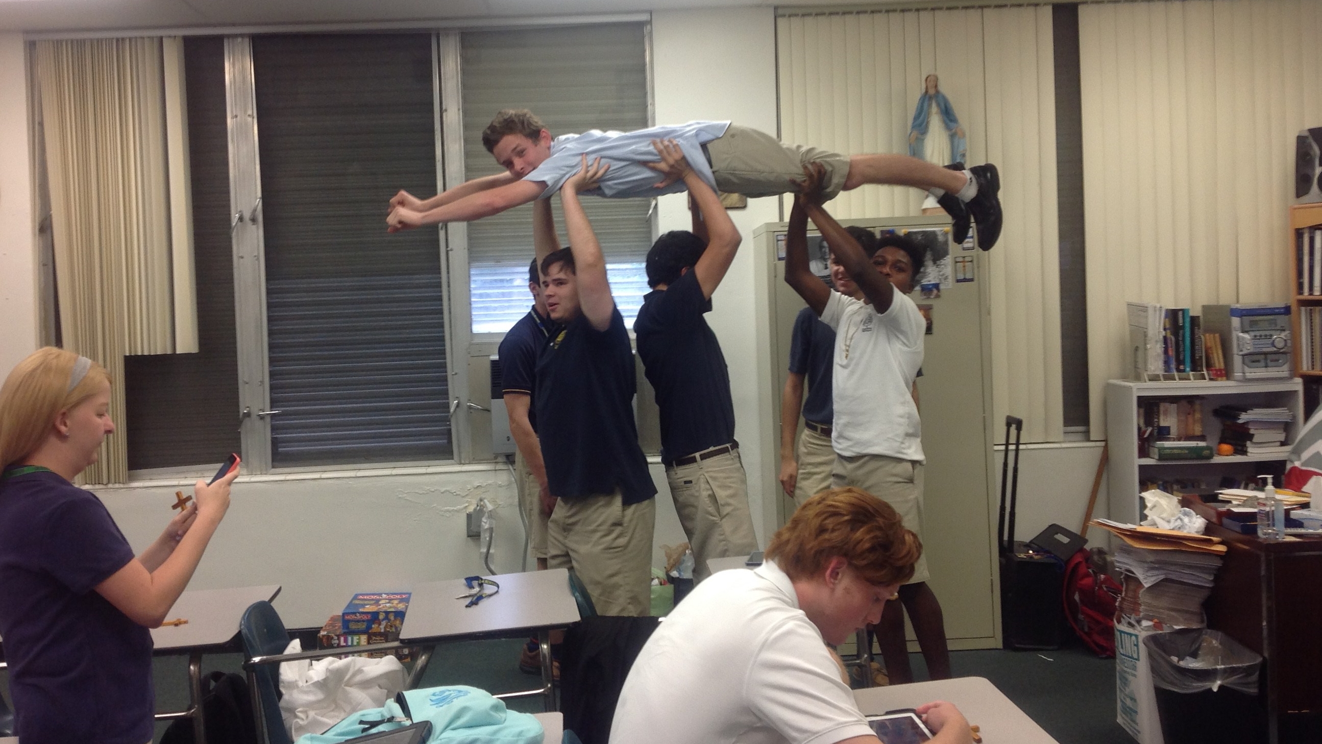 Mark was walking home one day and noticed that a boy had fallen. Books, a bat and glove, a few sweaters, and small tape recorder were scattered about. Mark went to the boy and offered to help. The two middle school students realized they were heading for home in the same direction so Mark offered to help the boy carry some of his things.