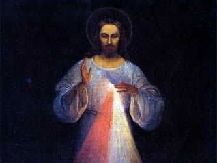 Painting: The first image of the Divine Mercy painted representing St. Faustina’s vision by Eugene Kazimirowski, 1935