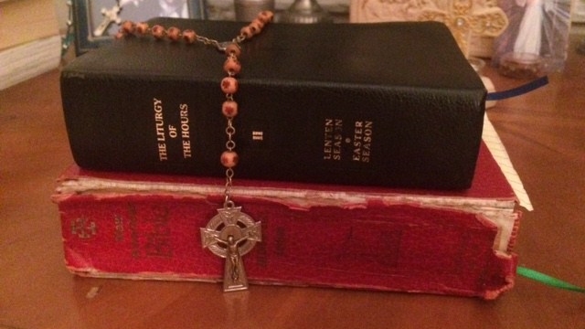 Photo: Bible, Breviary, and Rosary, my anchors for helping me to trust Jesus and put God first in my life each day