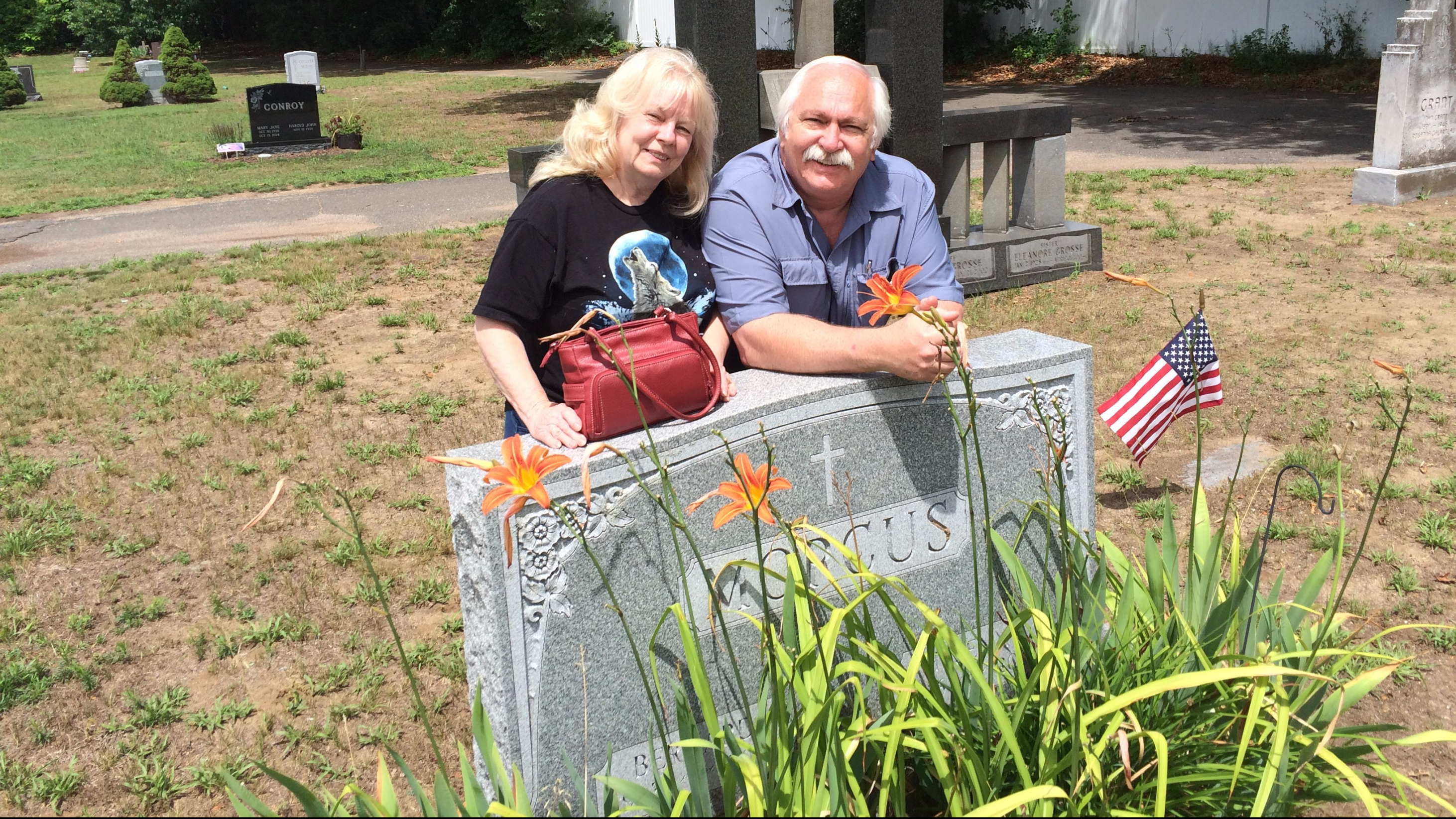 Photo: My mother and step-father at the grave of my maternal grandparents.