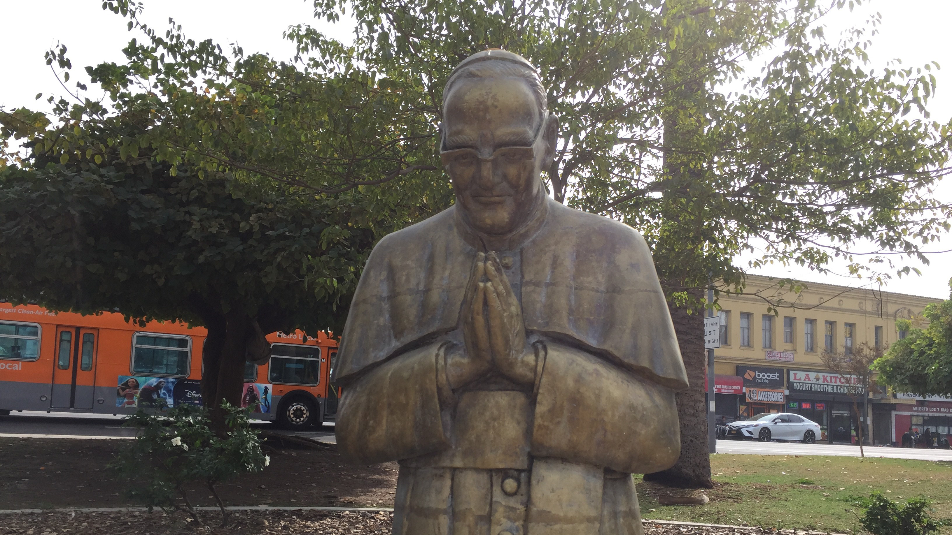 Photo: I stopped to pray yesterday at the Monsignor Oscar Romero Memorial Plaza, Los Angeles, on my walk coming from meditating at the Zen Center of Los Angeles and before continuing on to the noon Mass at the Cathedral of Our Lady of the Angels.