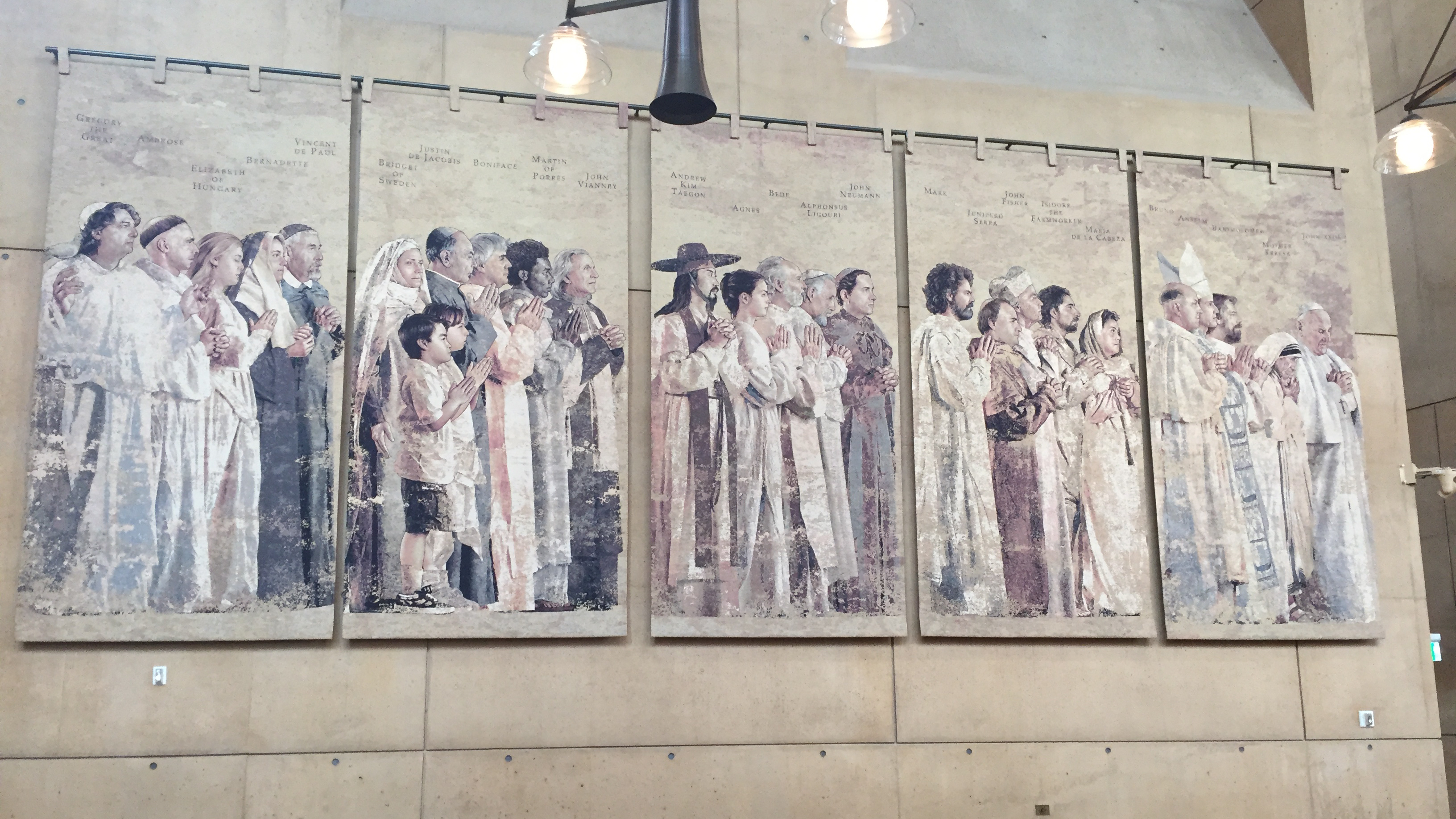 Photo: Tapestry hanging in the sanctuary of the Cathedral of Our Lady of the Angels, Los Angeles, CA. Some of the saints who practiced their part in God’s theodrama and are now with God in heaven.