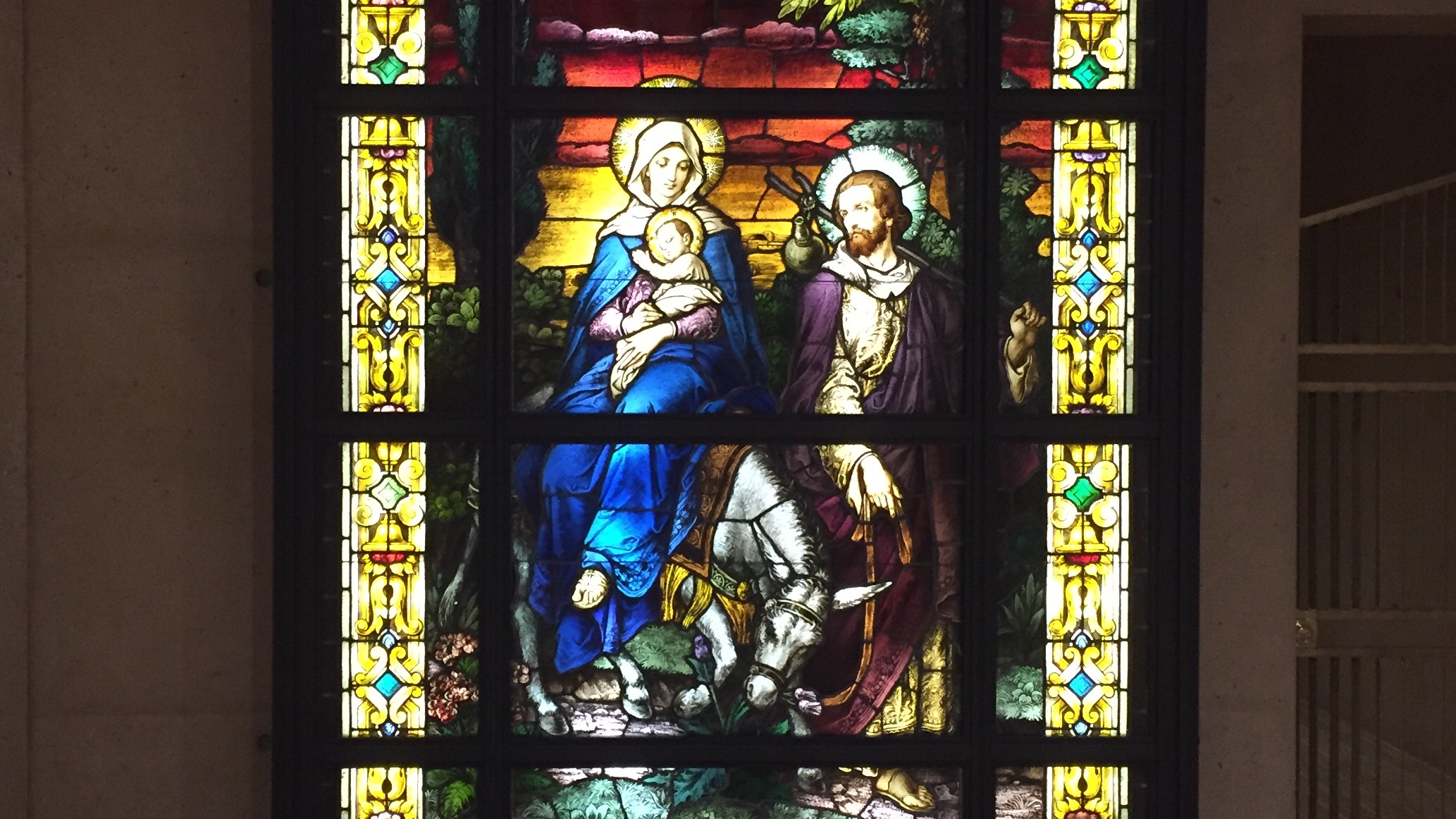 Photo: Stain glass of the Holy Family at the Cathedral of Our Lady of the Angels, Los Angeles, CA.