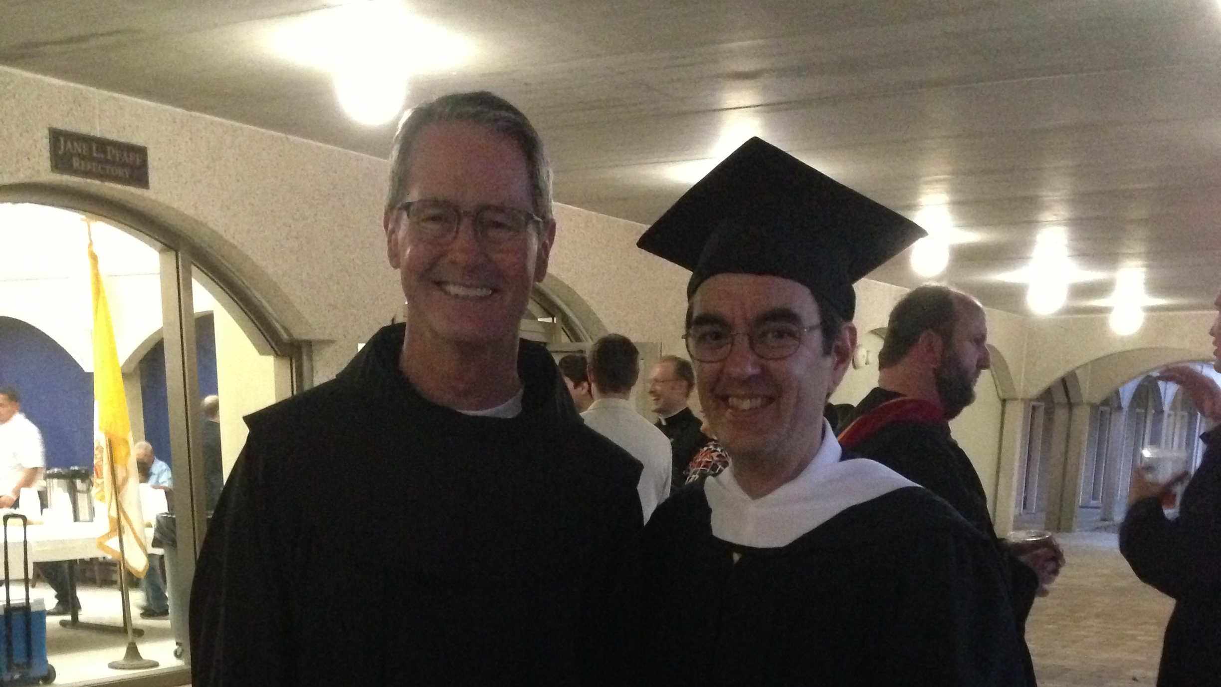 Photo: With Fr. Bill Burton, ofm, 2013 graduation from St Vincent de Paul Seminary. Fr. Bill was one of the guides there that helped me to shed some of my old skin, so to better receive the new wine of the Gospel!