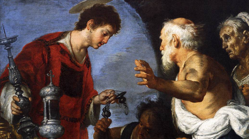 Painting by Bernardo Strozzi of St Lawrence, the third-century deacon and martyr. Lawrence was asked by the Roman prefect to bring the wealth of the church to help maintain the Roman army. Three days later, Lawrence returned with the blind and lame, lepers, orphans, and widows and said to the prefect, “These are the treasure of the Church.” St Lawrence on this your feast day, pray for us!