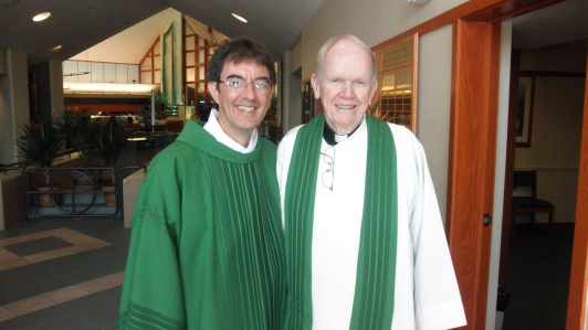Photo: Fr Ed O’Brien from CT and me during my first weekend of Masses after my ordination. Fr Ed played a key part in my journey. He led me through the RCIA program and to confirmation in my mid-twenties.