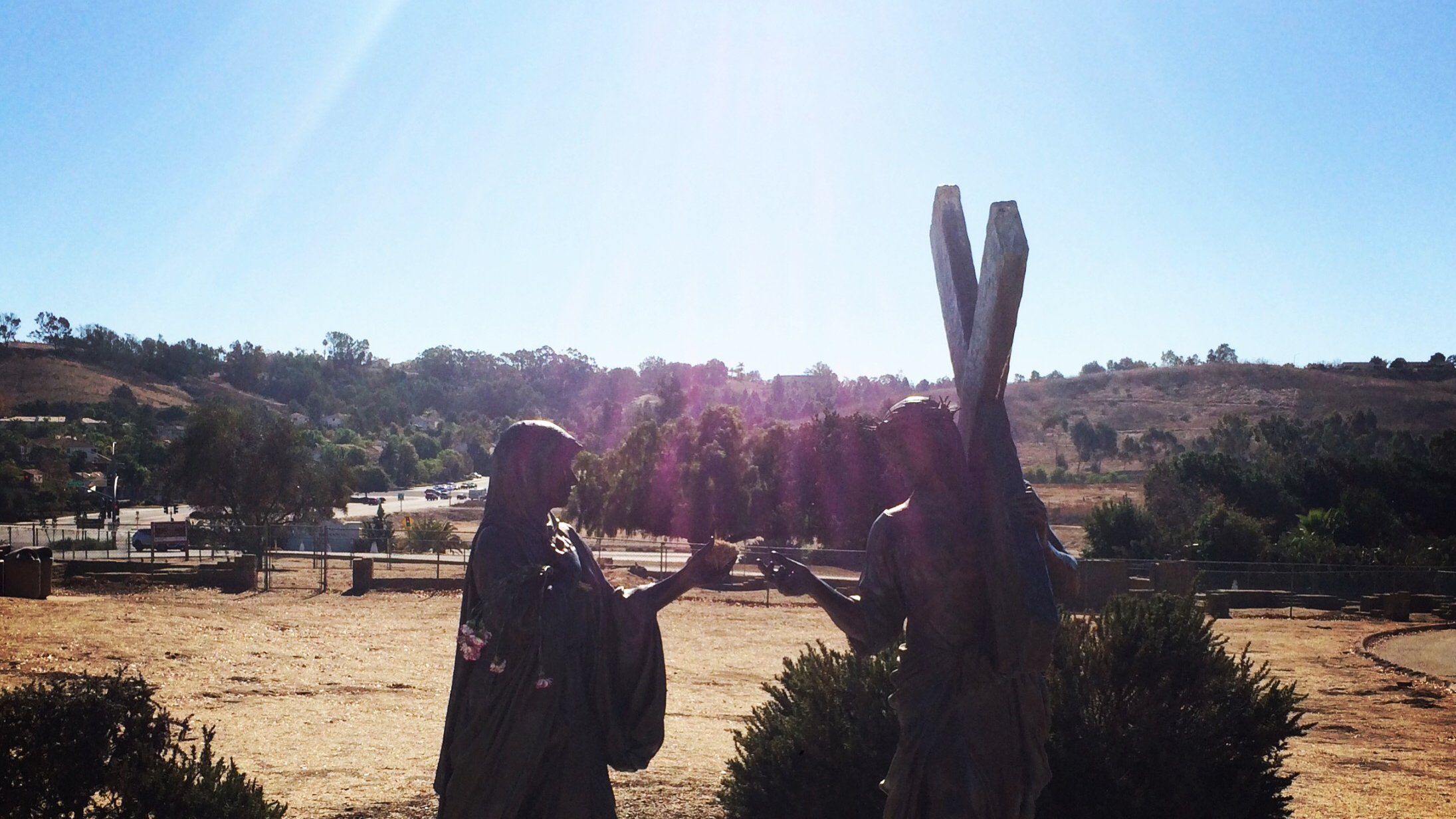 Photo: Statue of Jesus and Mary outside Mission San Luis Rey de Francia, Oceanside, CA, Christmas 2017