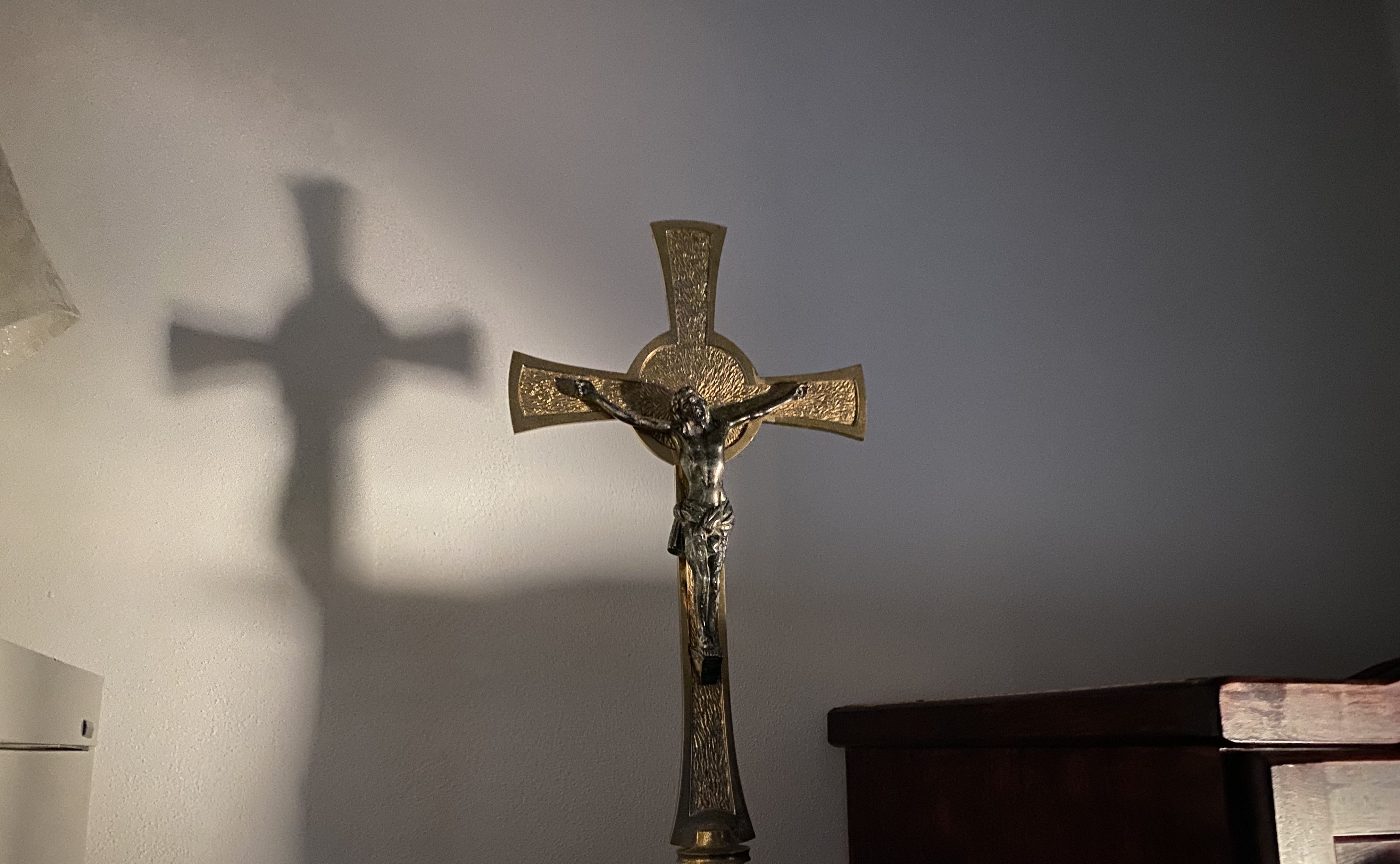 Photo: Processional cross as the sun rose a few days ago before morning liturgy.