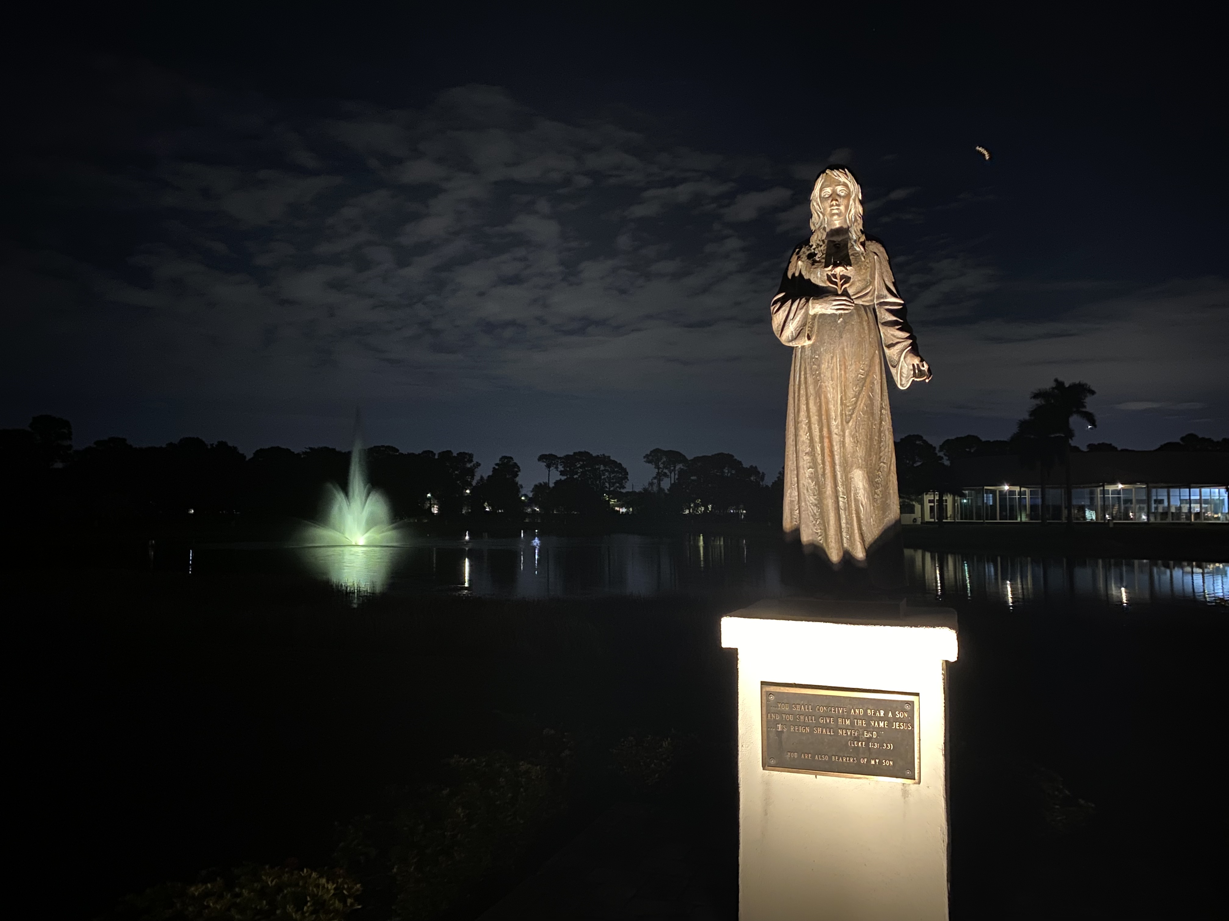 Photo: The last line of the plaque below the statue of Mary reads: “You are also bearers of my Son.” Like the moon reflecting the light of the sun, Mary reflects the light of her Son. May we do the same.