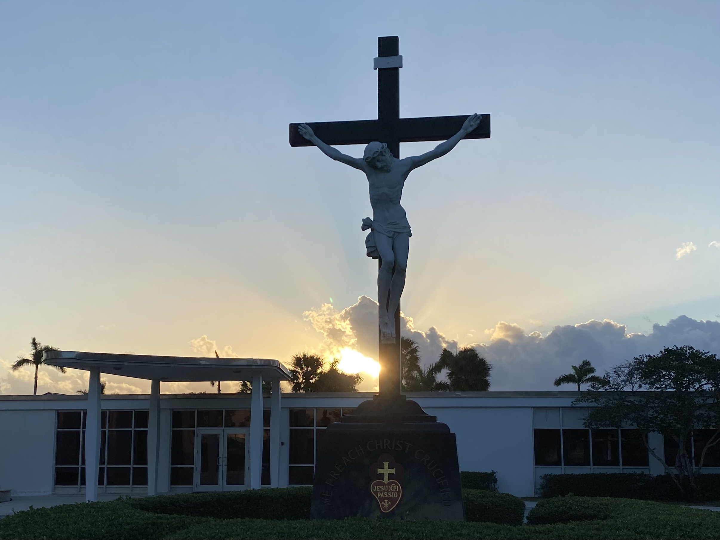 Photo: Jesus is the One whom God sent to die and conquer death that we might have life and have it to the full. Good Friday sunrise at Our Lady Of Florida Spiritual Center, North Palm Beach, FL.