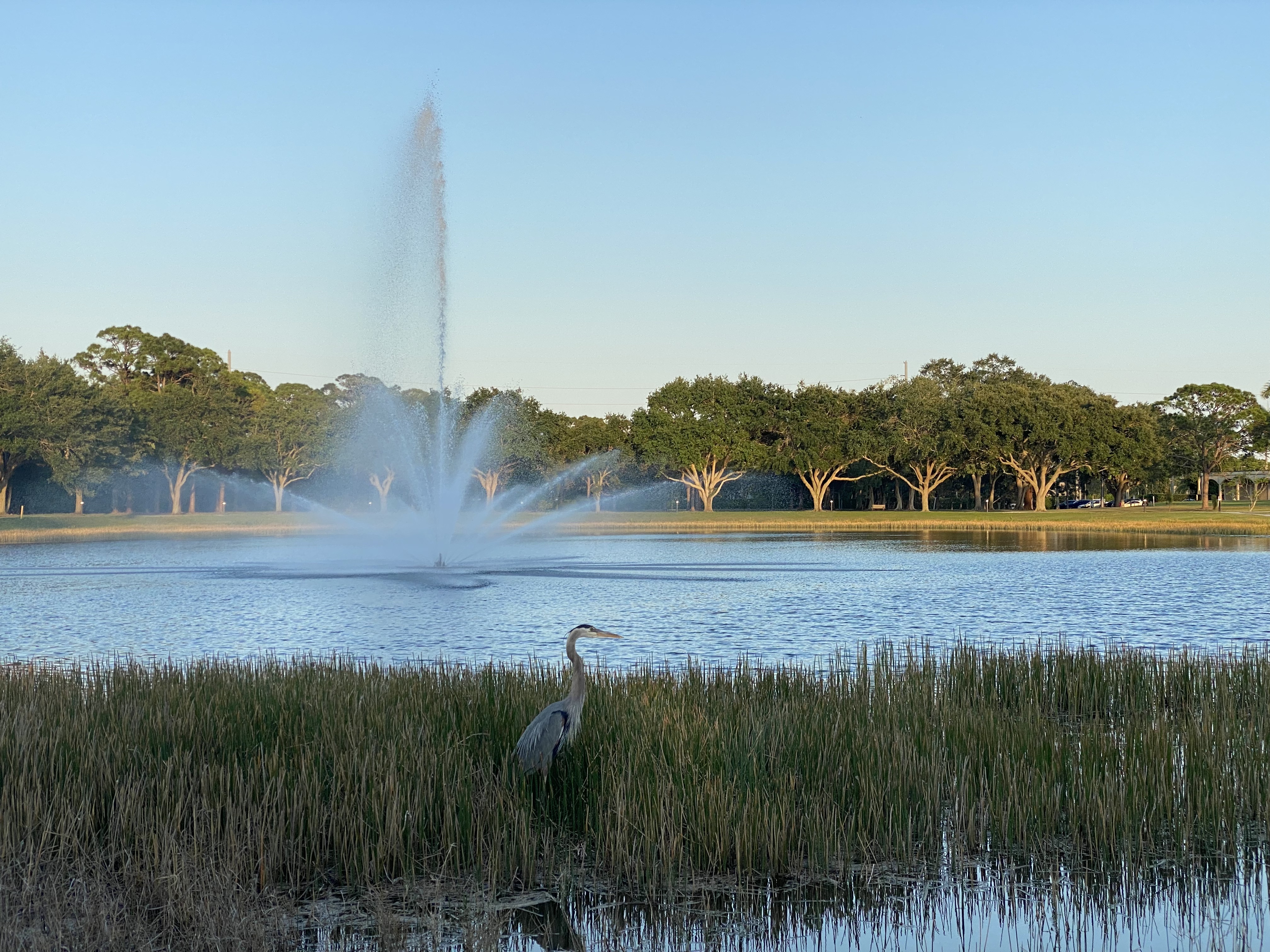 Photo: Taking some time to ponder and enjoying the company of a Blue Heron. St. Vincent de Paul Regional Seminary, Boynton Beach, FL.