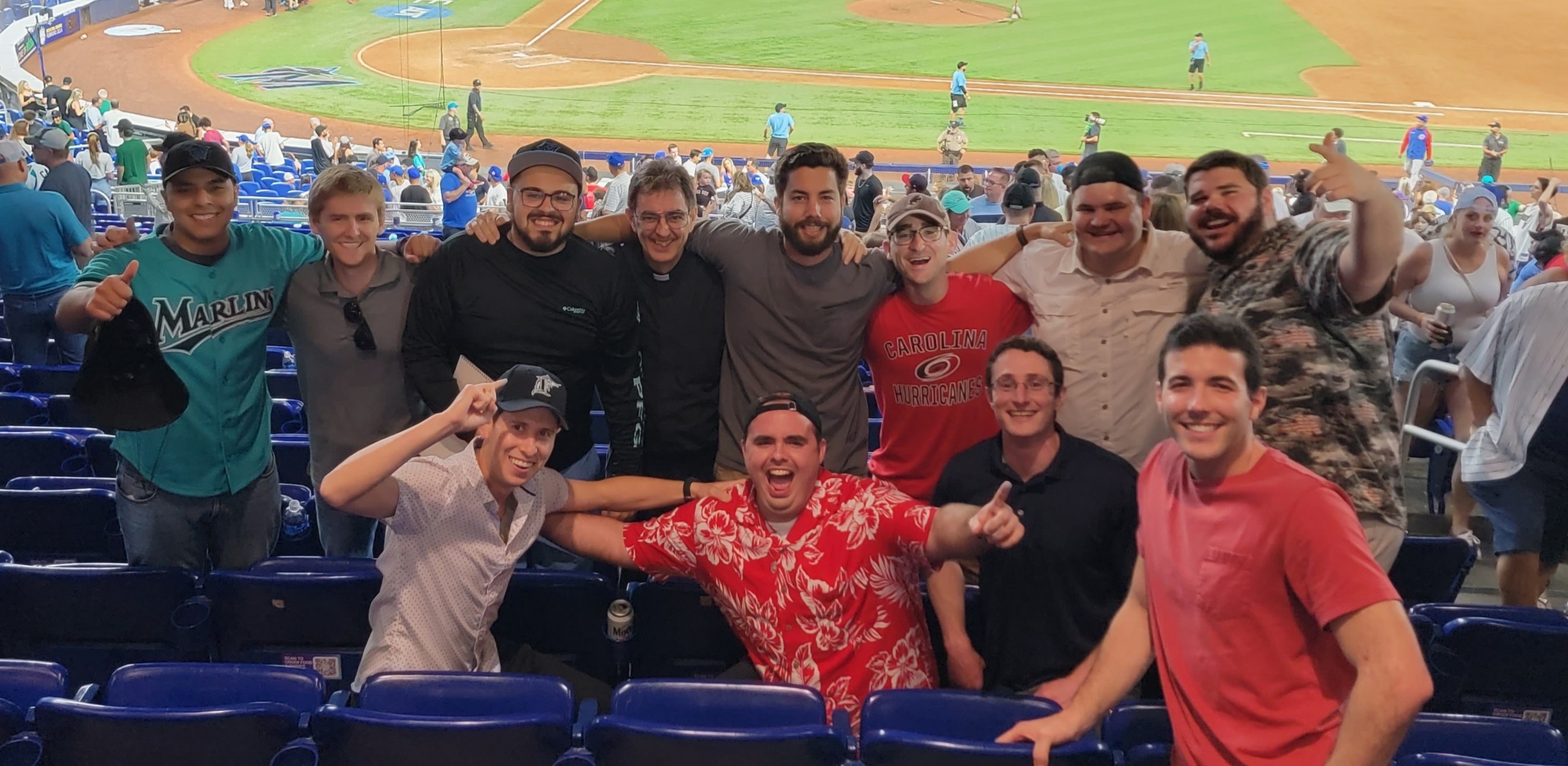 Photo: My seminarian brothers helped me to get my nose out of the books to enjoy a Marlins game back in April of ’23.
