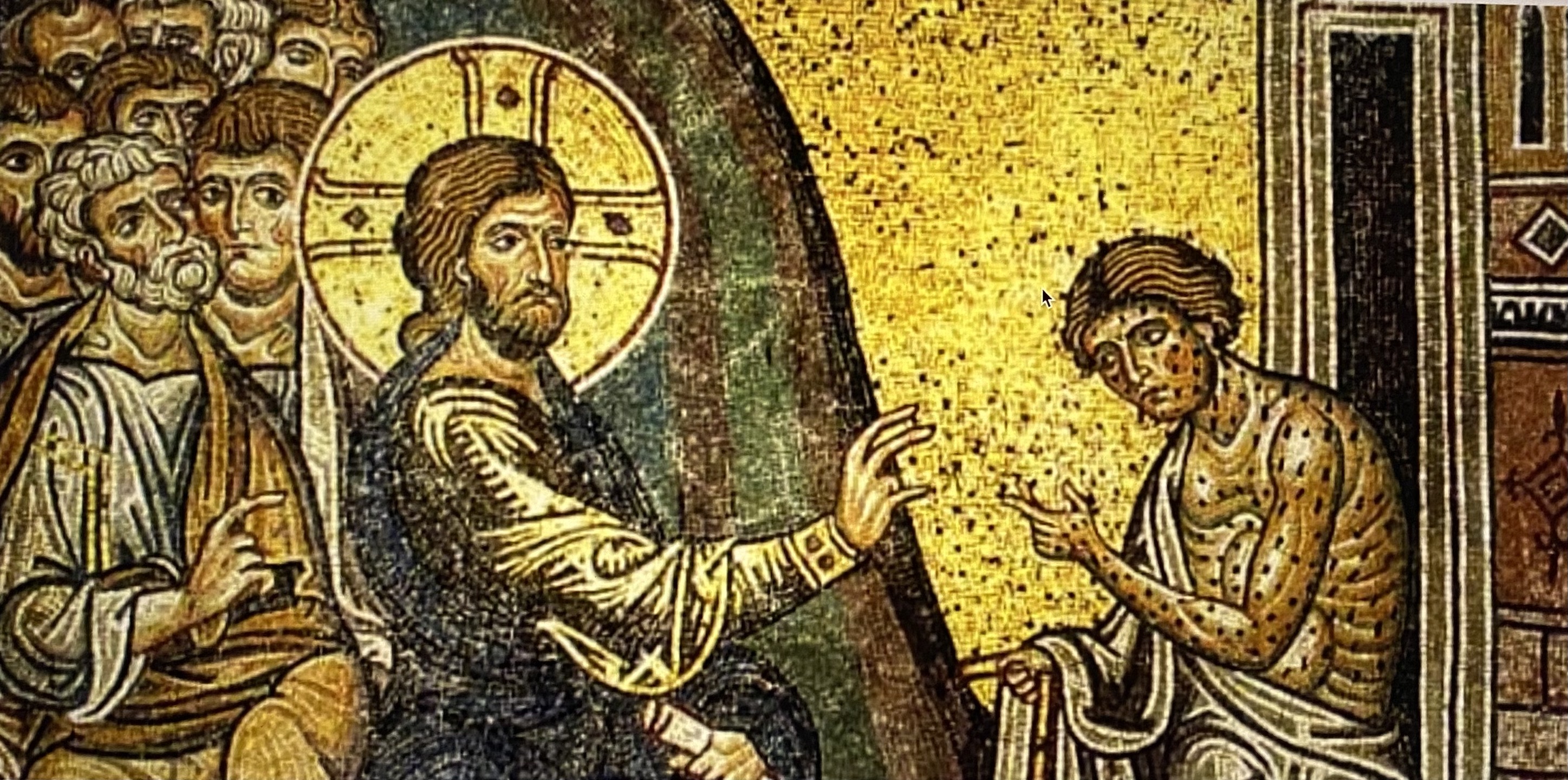 Photo: Mosaic of Jesus Heals the Leper, in the Cathedral of the Assumption, Monreale, Sicily.