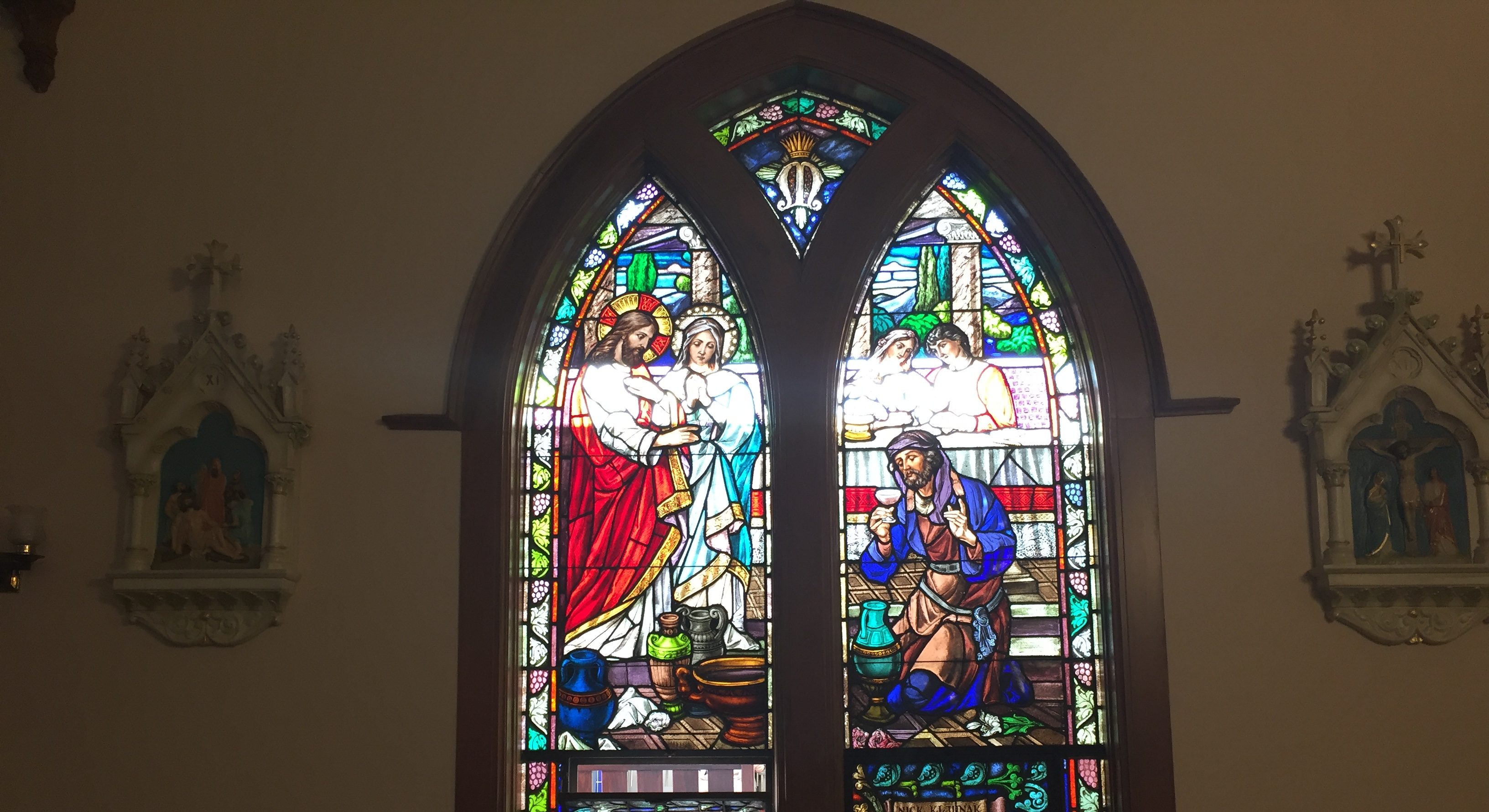 Photo: Stained glass window of Jesus changing water to wine, St. Anthony’s Croatian Church, Los Angeles, taken June of 2019.