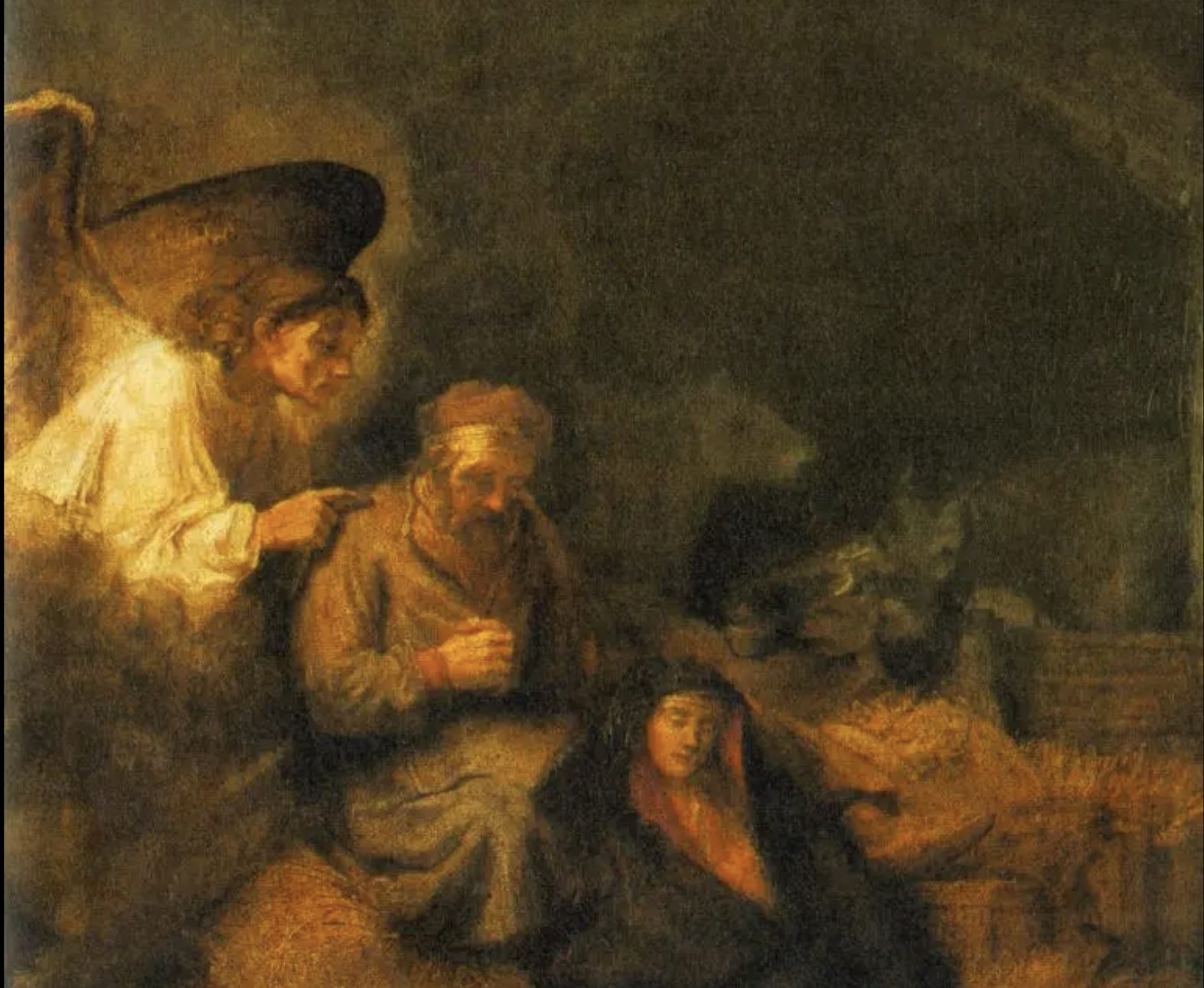 Painting: Closeup of Rembrandt’s “Dream of St. Joseph”