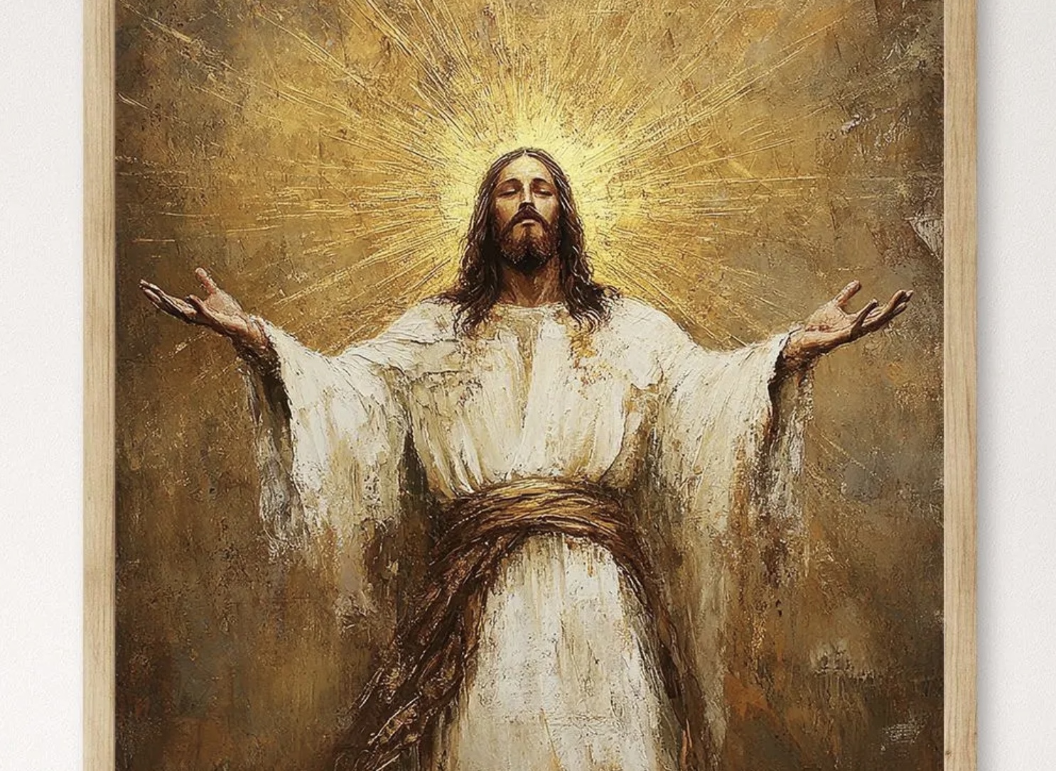 Painting: “Jesus Christ with Open Arms Art Print, Radiant Light” from Etsy