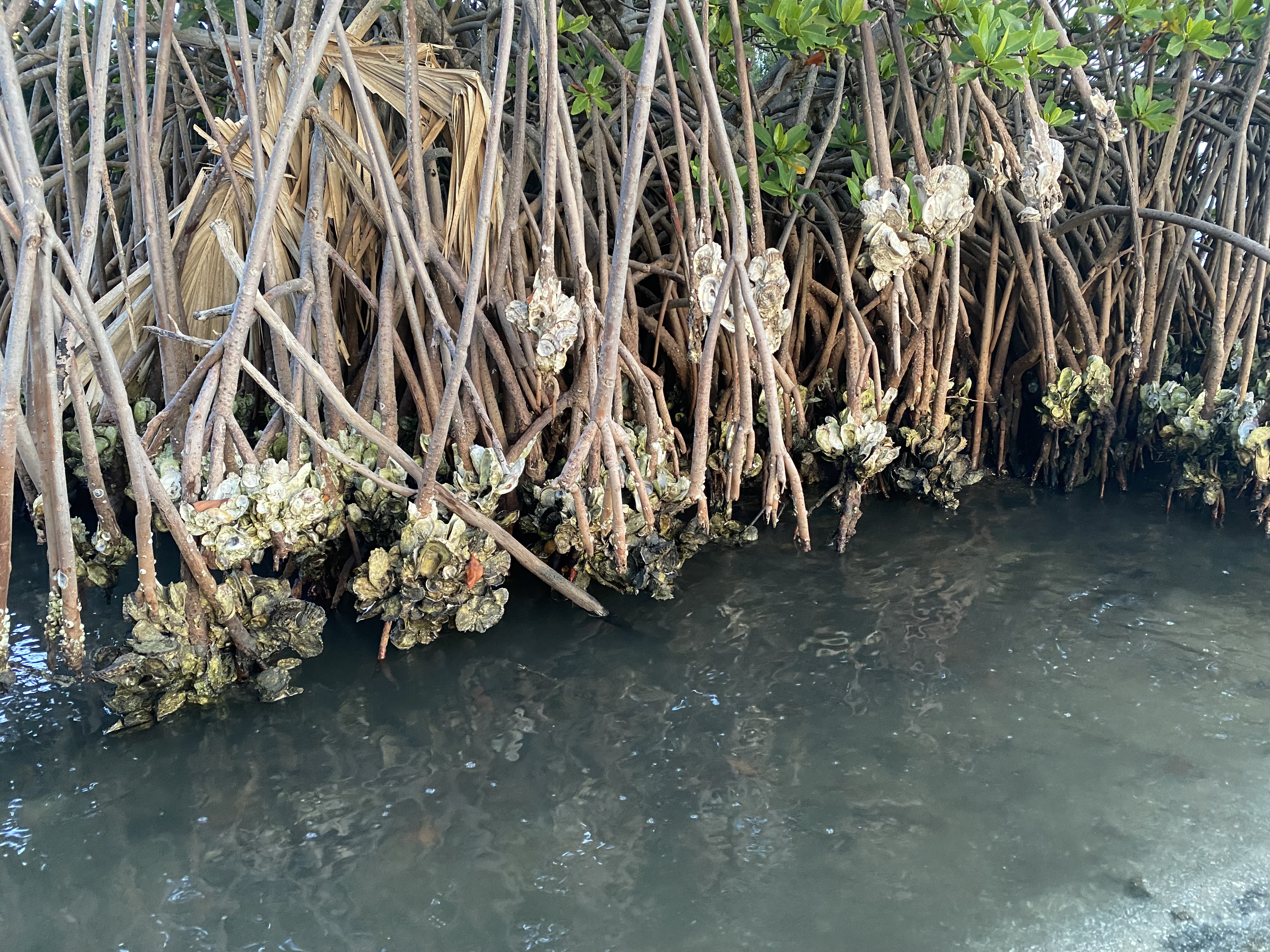 Photo: A momentary pause during my Rosary walk to observe the interplay between some mangrove stems and barnacles. Many invitations to experience God’s wonder when we get out and about!