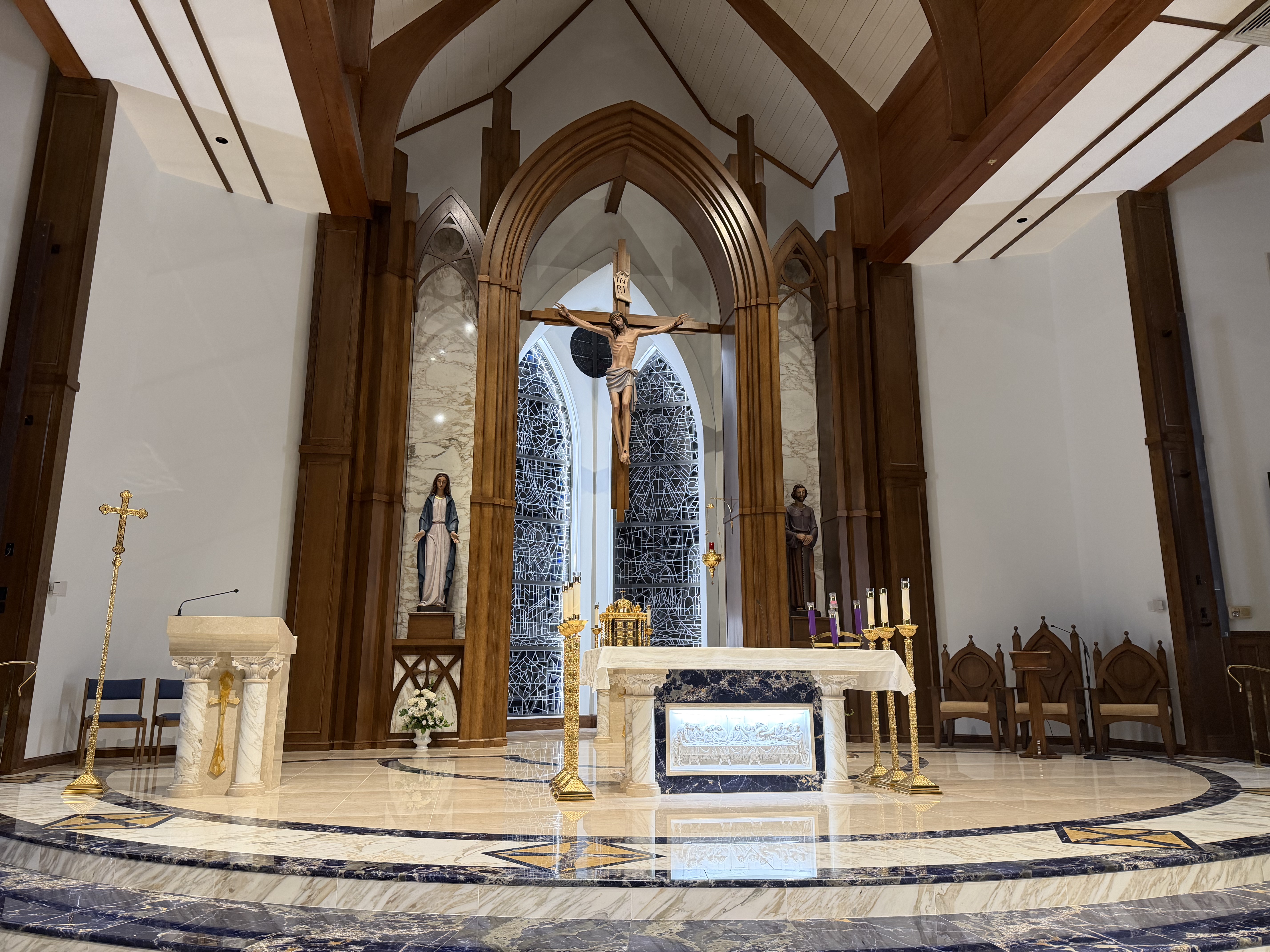 Photo: Where I come to sit at Jesus’ feet during my holy hour each evening since returning to our renovated church a few weeks ago.