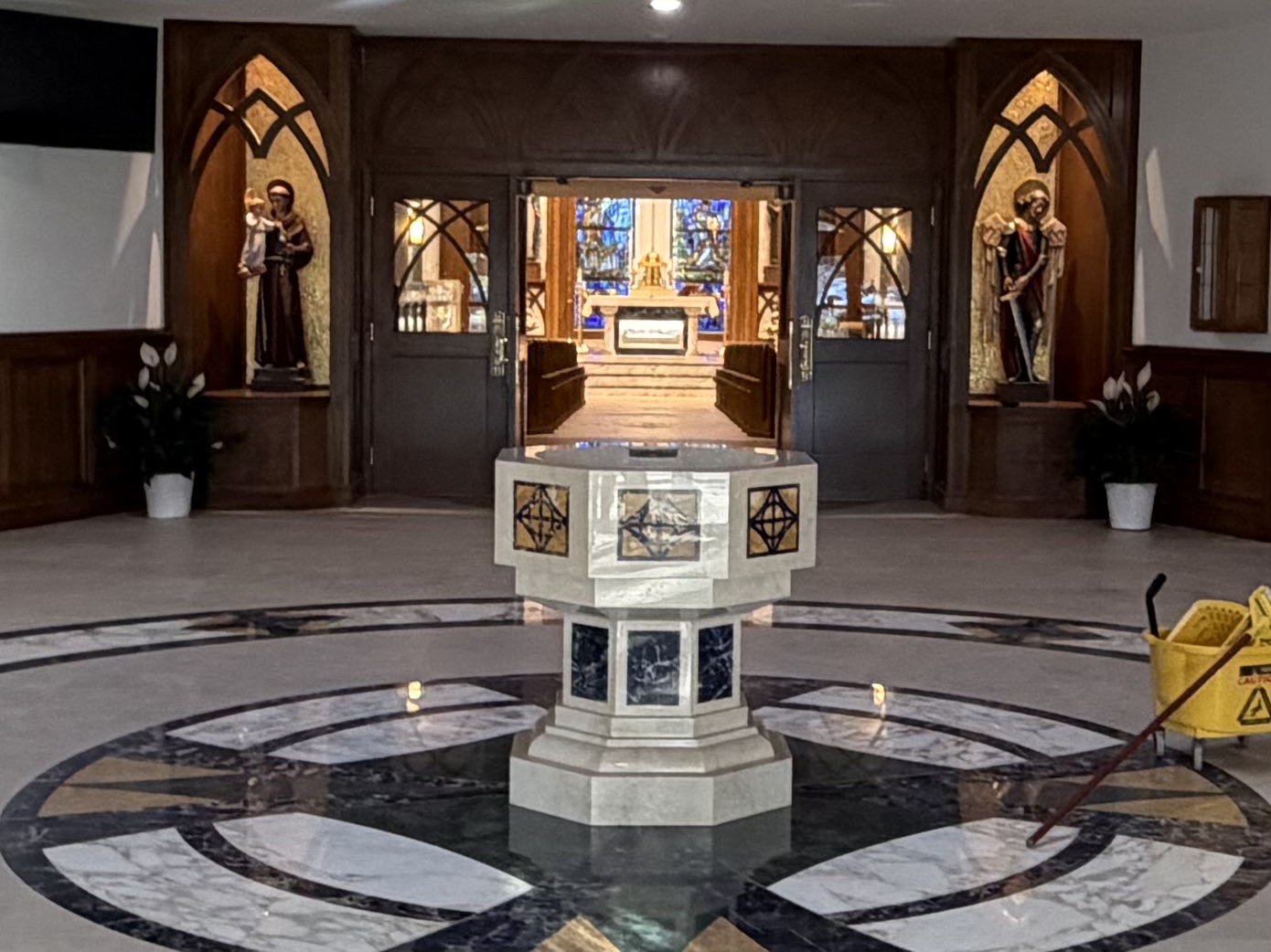 Advent is also an opportunity to slow down and remember why we do what we do. Each time we pass the baptismal font we bless ourselves with the Sign of the Cross. We are invited to resist the temptation of dipping in our fingers and continuing to move ahead on the fly. Instead, may we stop, dip our fingers and intentionally make the Sign of the Cross calling to mind each person of the Trinity.
