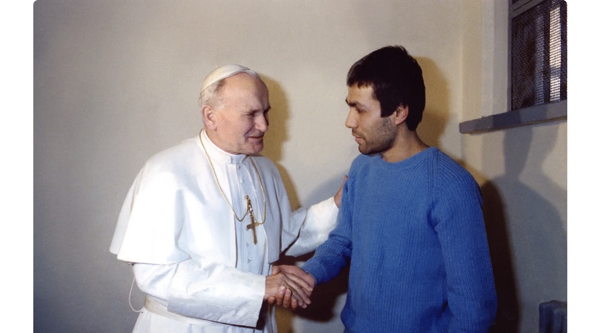 Image: Pope St. John Paul II living Jesus’ teaching of forgiveness in his meeting with the man who shot him, Mehmet Ali Agca – ARTURO MARI/AFP/Getty Images