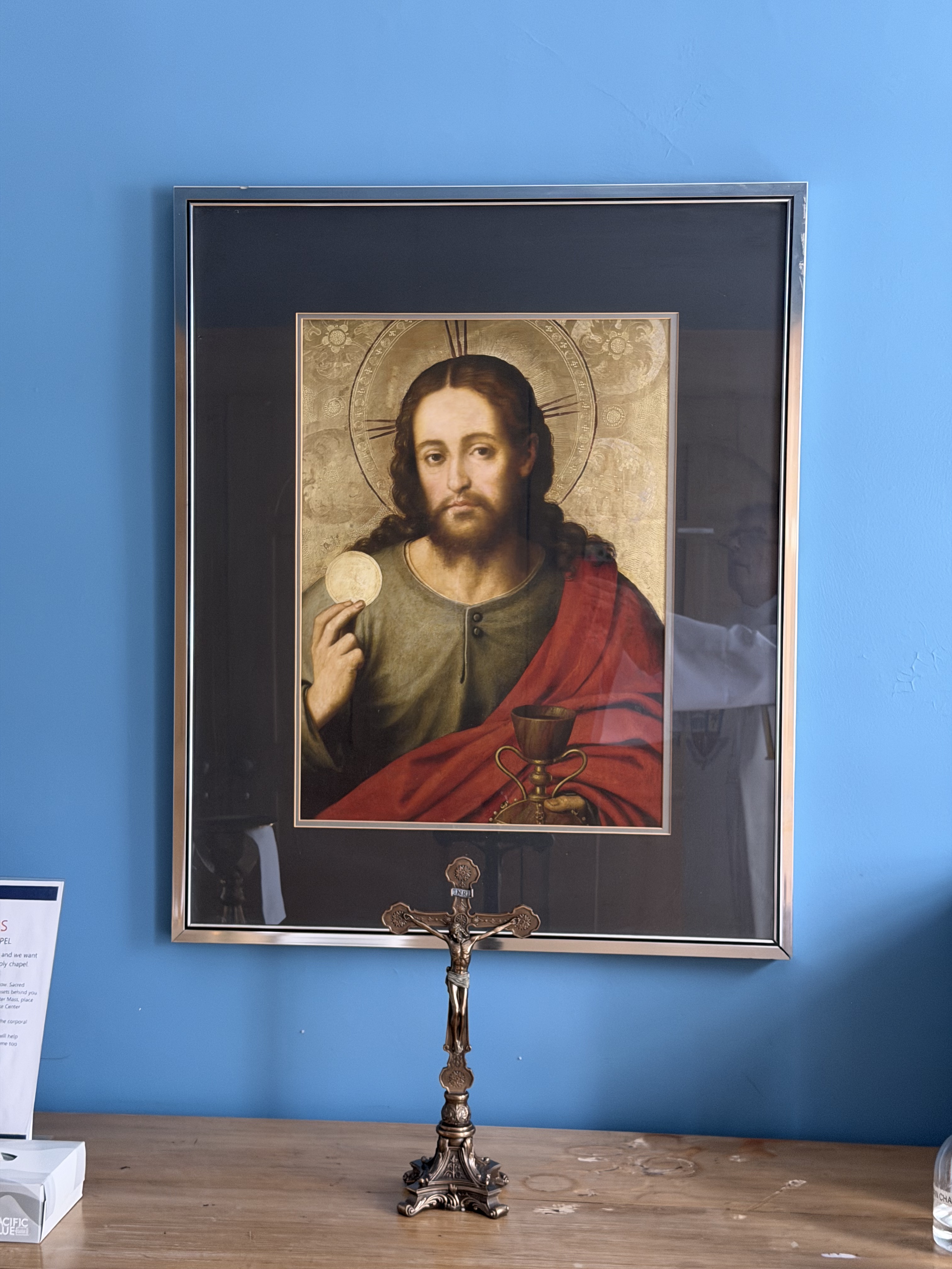 Photo: Print of the painting: “Christ the Saviour” by Vicente Juan Masip hanging in the sacristy in the chapel of St. Mary of the Lake.