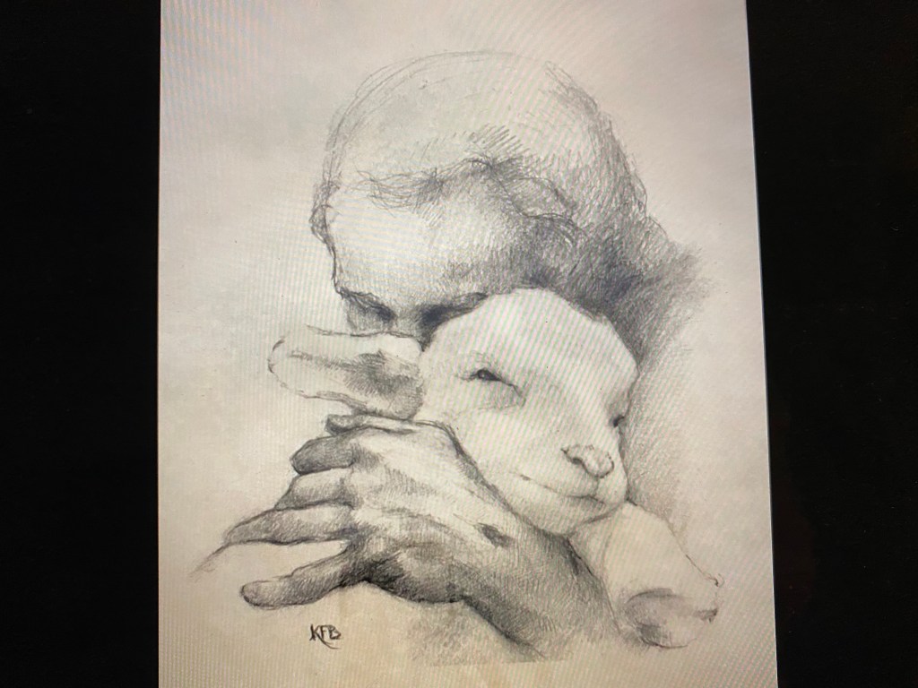 Drawing by: Jesus and the Lamb by Katherine F. Brown