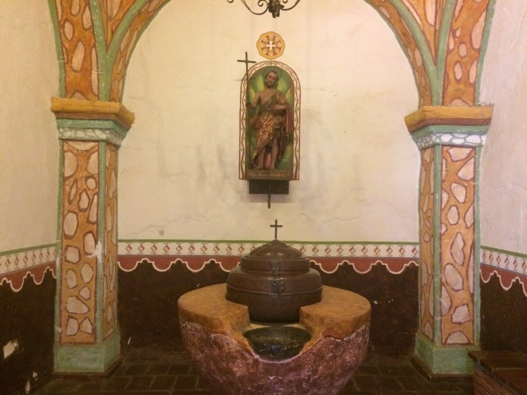 Photo: Baptismal font with a statue of John the Baptist, from Mission San Luis Rey de Francia, Oceanside, CA