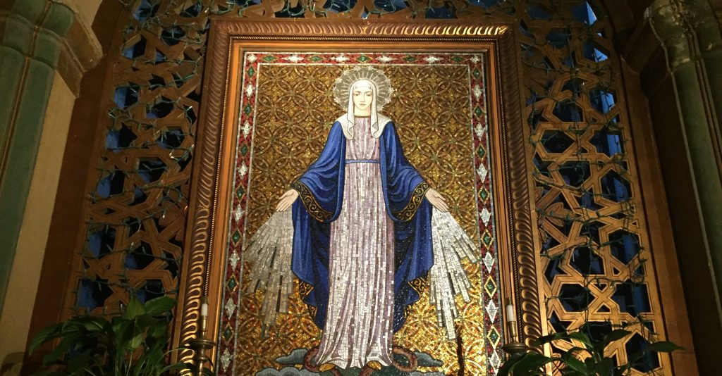 Photo of Mary, side altar at the Mission Dolores Cathedral, San Francisco from my visit there about two years ago.