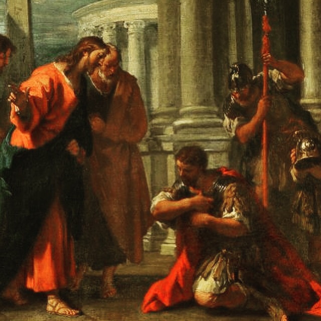 The one to whom Jesus is referring to is a Roman centurion who approached Jesus seeking healing for his servant. I imagine that Jesus was not only amazed by the man’s humility, in recognizing his sinfulness and that he believed that Jesus could heal from a distance with simply his word, but also that he was aware of the need and suffering of his slave and willingness to do something about it. This Roman centurion, an occupying presence in Israel, clearly embodied the teachings of Jesus! It is from the centurion’s words that we get the words that we speak before receiving Jesus in the Eucharist during each Mass: “Lord, I am not worthy that you should enter under my roof, but only say the word and I shall be healed.”