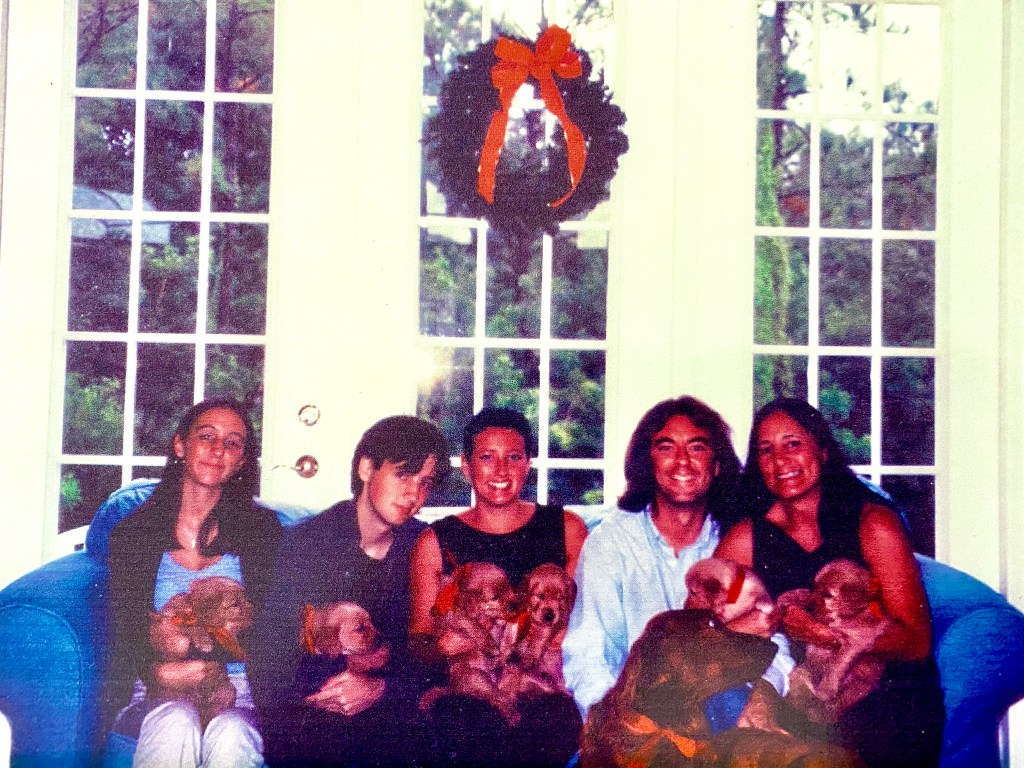 Photo: Following God’s discernment led me to JoAnn, family, and puppies! Picture from Christmas about 2002.