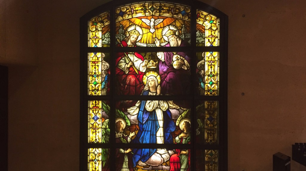 Stain glass of the Assumption of Mary at the Cathedral of Our Lady of the Angels, Los Angeles, CA
