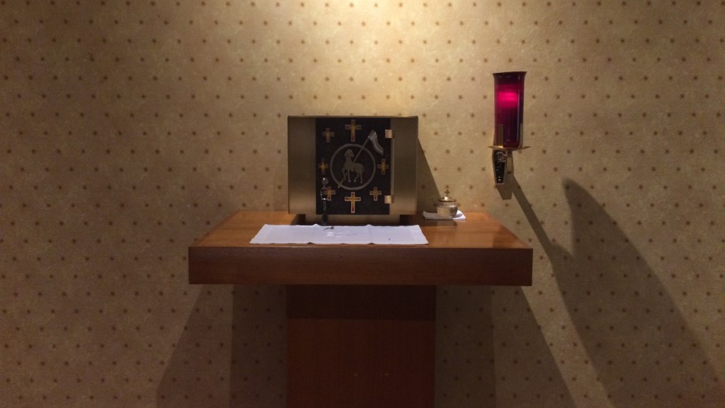 Photo: Our tabernacle in the chapel at Cardinal Newman High School. In experiencing Jesus in his precious Body and Blood we are better able to experience him in each other.
