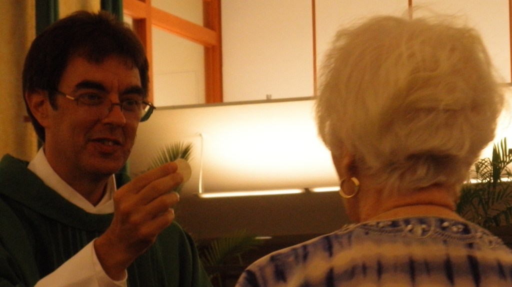 Jesus, the Holy One of God, comes close to us in the consecrated bread and wine.