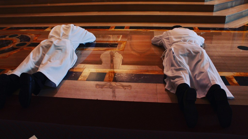 Photo: My classmate Deacon Henry and me during our ordination. Prostration during the rite symbolizes our unworthiness for the office to be assumed and our dependence upon God and the prayers of the Christian community and prayers which we continue to need and rely on! Thank you!!!