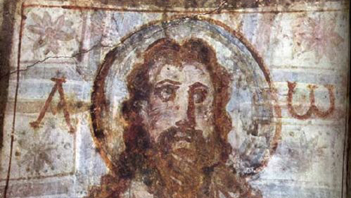Photo: 4th century mural of Jesus from catacomb of Commadilla