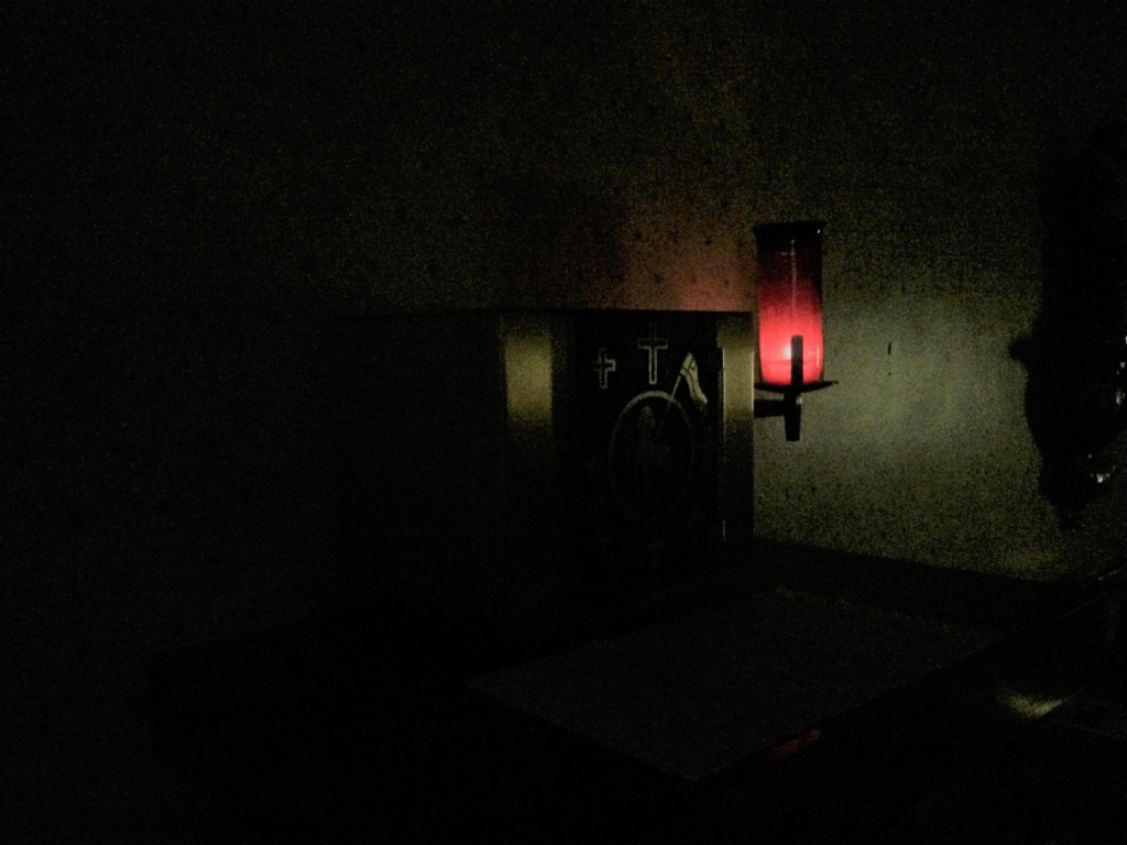 Photo: tabernacle and sanctuary lamp in the chapel at Cardinal Newman High School, before the dawn. I am looking forward to returning to waking the dawn at CN soon!!!