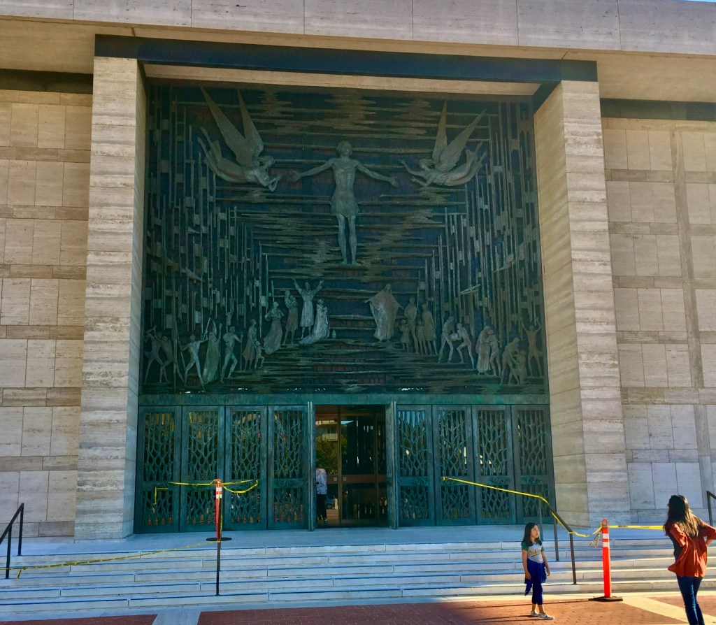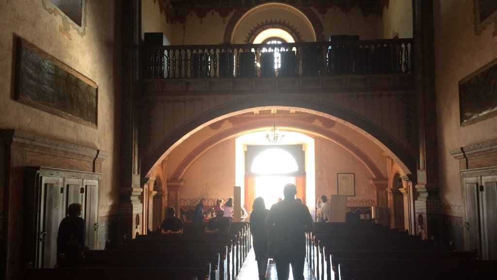 Photo: Exiting Mass from Mission del Rey, Oceanside, CA. One of the ways we are dismissed after Mass is to “Go in peace, glorifying the Lord by our life.”