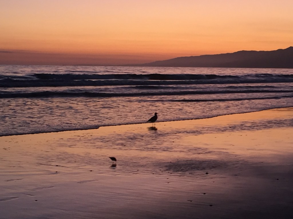 Photo: Sunset at Santa Monica Beach about this time last year with Jack and Christy watching the sunset.