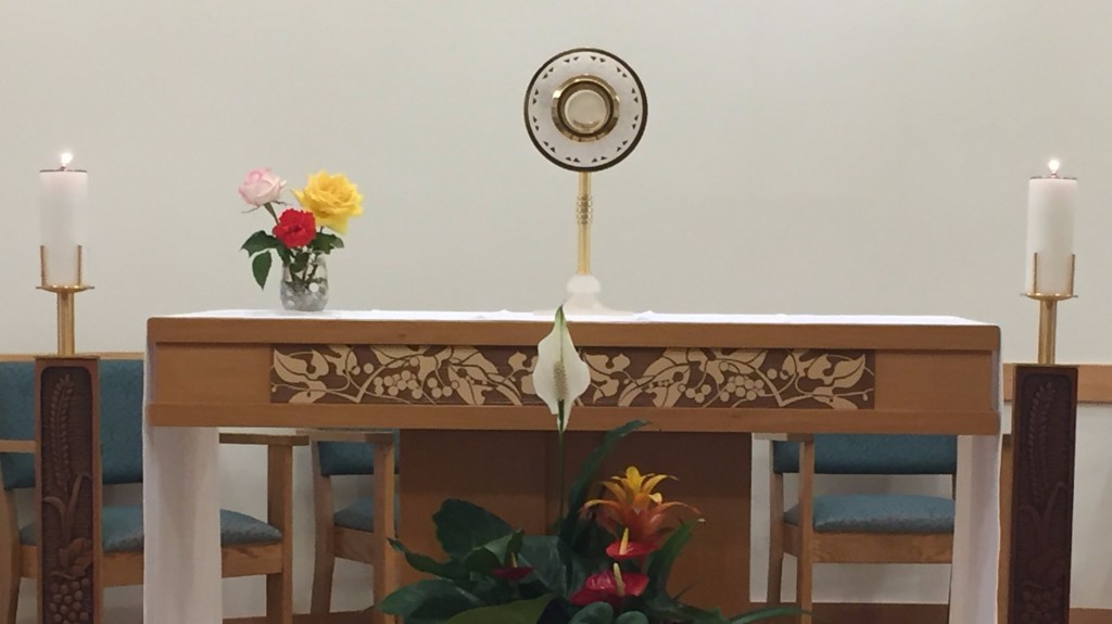 Photo: Spending time in Jesus’ embrace in the chapel at the Sisters Disciples of the Divine Master, Los Angeles. We put God first in our lives when we spend time with him in Mass, adoration, prayer, fellowship, and serving one another in love