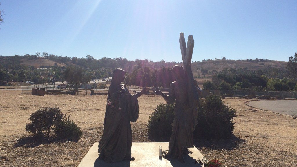 Photo: Statue of Jesus and Mary outside Mission San Luis Rey de Francia, Oceanside, CA, Christmas 2017