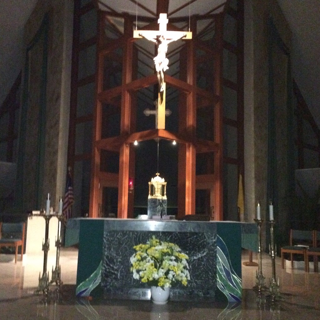 Photo: Sanctuary of St Peter Catholic Church, early morning before Mass. St Monica, just before she died, asked her sons to remember her at the altar of the Lord wherever they may be.