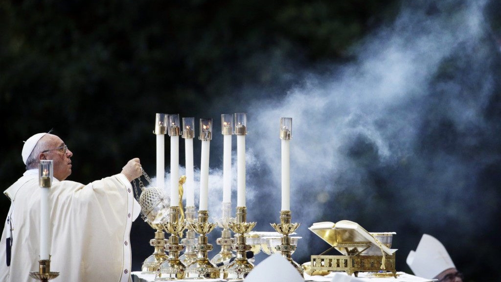 Photo: Pope Francis incensing the altar during outdoor Mass at the National Shrine of the Immaculate Conception, Wednesday, Sept. 23, 2015, in Washington D.C. (AP Photo/David Goldman).