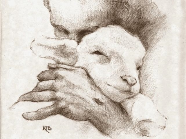 Drawing by: Jesus and the Lamb by Katherine F. Brown