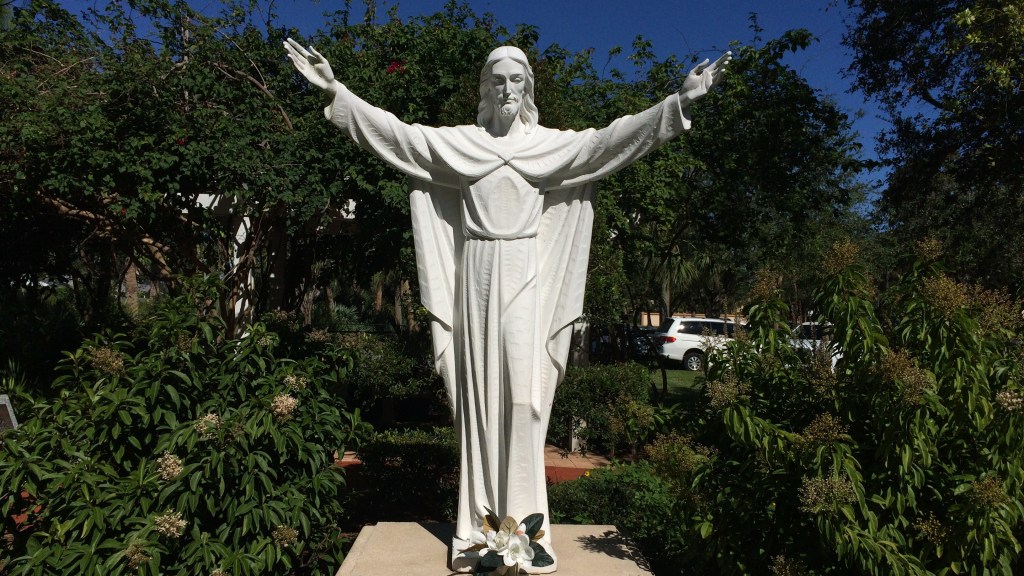 Photo: Statue of Sacred Heart of Jesus on the grounds of St Peter Catholic Church in Jupiter, FL